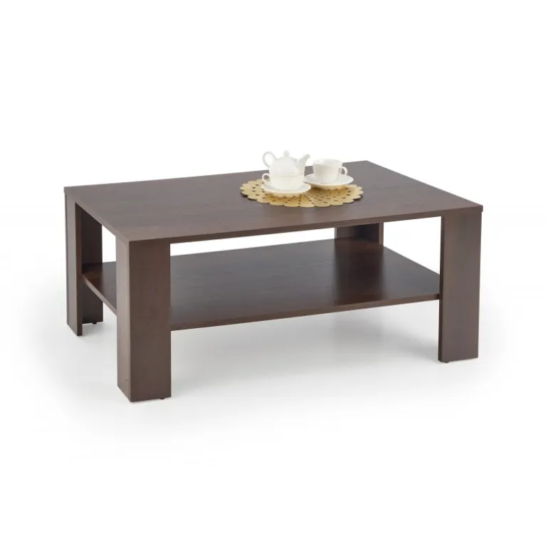 Oplev elegance og funktionalitet med KWADRO c. bord i farven mørk valnød. Dette sofabord er fremstillet af lamineret MDF, som sikrer holdbarhed og et stilfuldt udseende. Med dimensionerne 110/65/53 cm passer det perfekt ind i enhver stue og tilføjer et moderne touch. Uanset om du har brug for et sted til dine magasiner, en kop kaffe eller dekorationer, opfylder dette bord dine behov med stil.