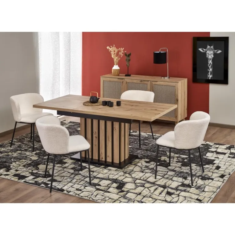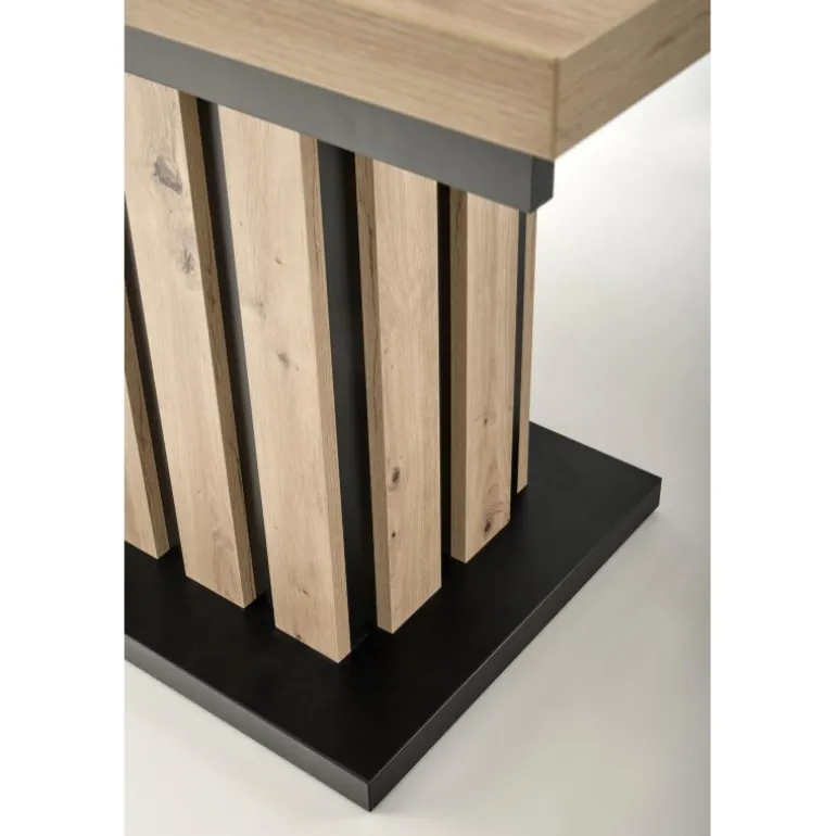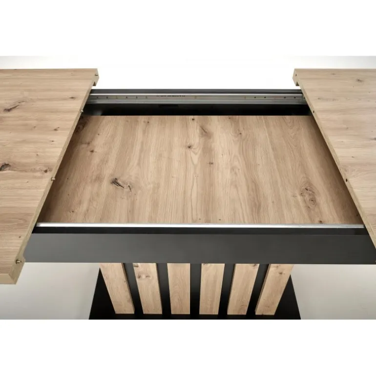 LAMELLO Spisebord med udtræket i håndværker eg og Sort er den perfekte løsning til både små og store sammenkomster. Med en justerbar længde fra 160 cm til 210 cm, er dette bord ideelt til både daglig brug og specielle lejligheder. Bordpladen er lavet af lamineret spånplade i en smuk håndværker eg finish, mens benene kombinerer håndværker eg og Sort for et stilfuldt og moderne udseende. Perfekt til ethvert hjem, der ønsker både funktionalitet og æstetik.