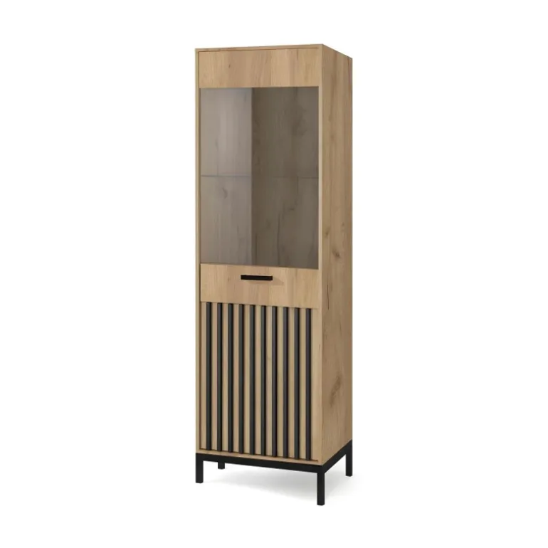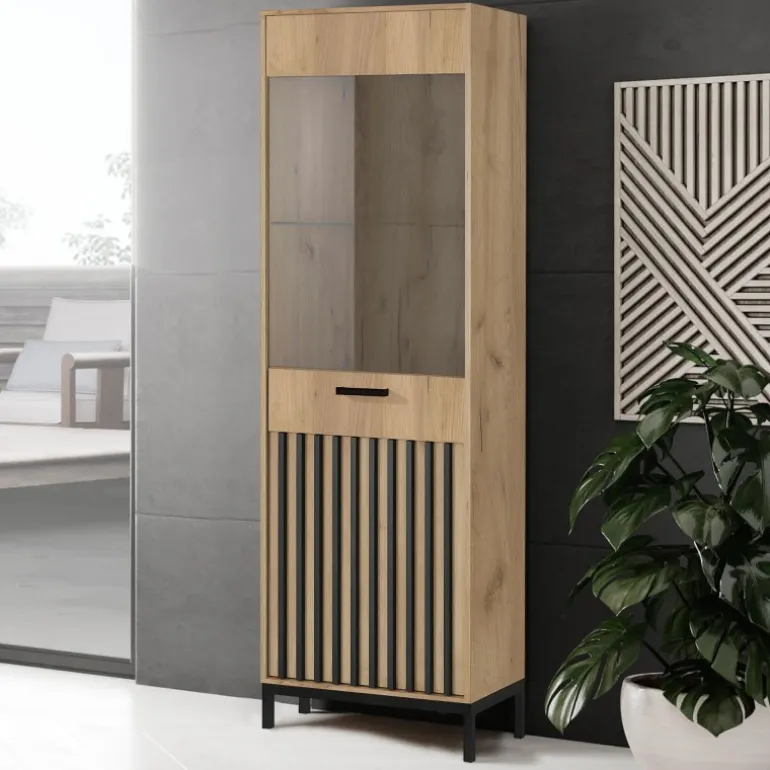 LAMINO W-1 udstillingsskab i craft eg og Sort er det perfekte valg til at fremvise dine mest værdsatte ejendele. Med dimensionerne 54/40/191 cm passer dette elegante skab nemt i ethvert rum. Fremstillet af lamineret spånplade og polypropylen for langvarig holdbarhed. Gør dit hjem endnu mere stilfuldt med dette moderne design, der kombinerer funktionalitet og æstetik på bedste vis.