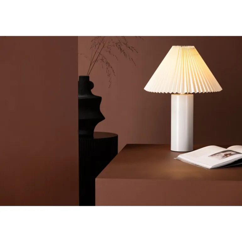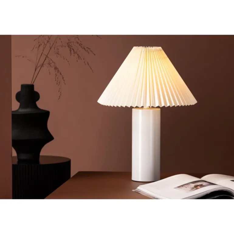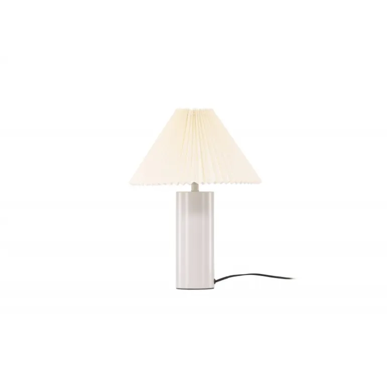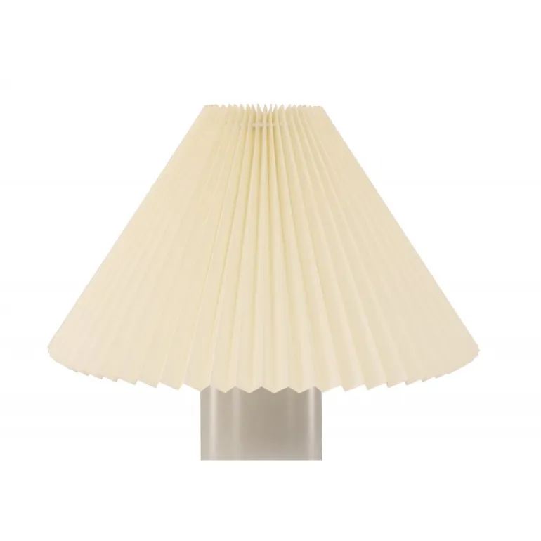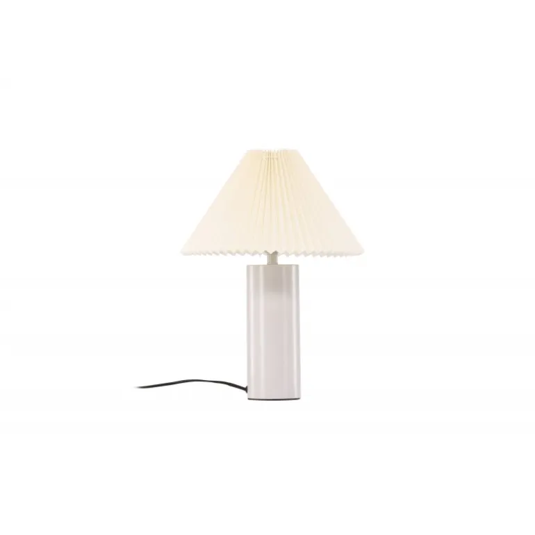 Largin er en stilfuld og moderne lampe, der passer perfekt på natbordet eller sidebordet. Den trendy lampeskærm i gråt stof med et foldet mønster kombineret med den cylinderformede lampefod i gråt jern gør denne lampe både tidløs og elegant! Med Largin får du et hyggeligt og behageligt lys samt en trendy interiørdetalje, der holder over tid.