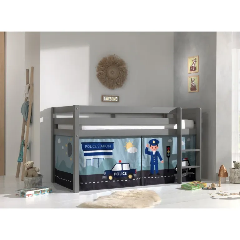 Legetæppe-forhæng til mellemhøj seng – Politi, blå