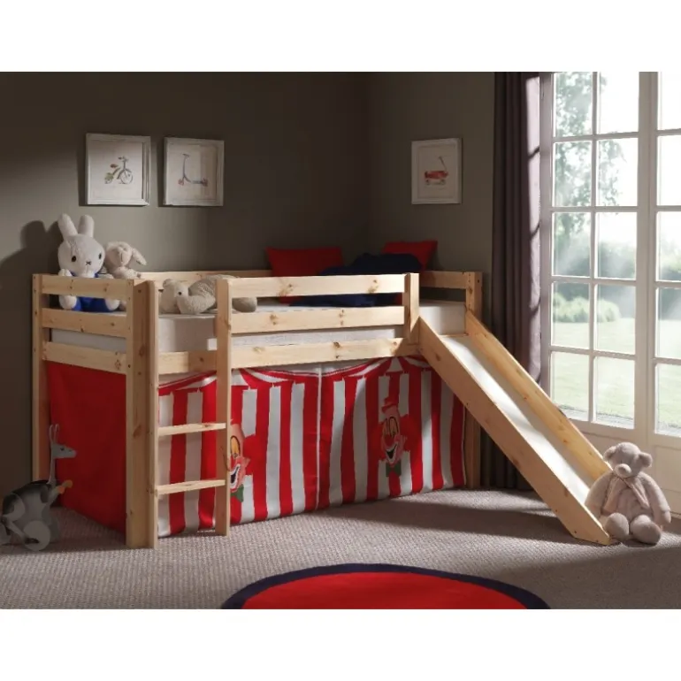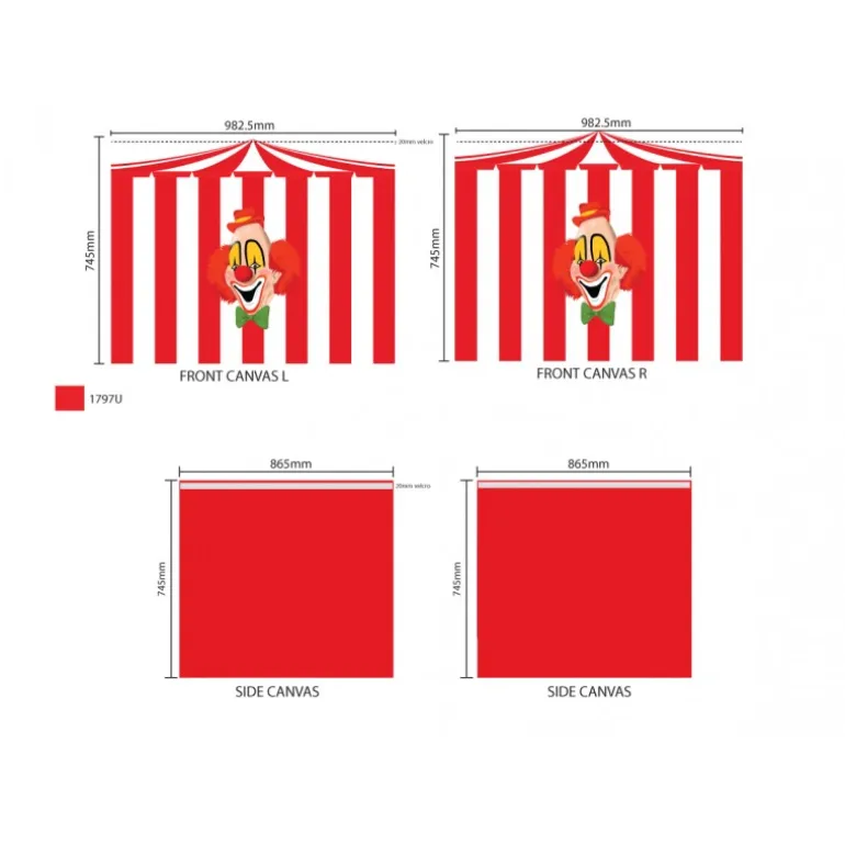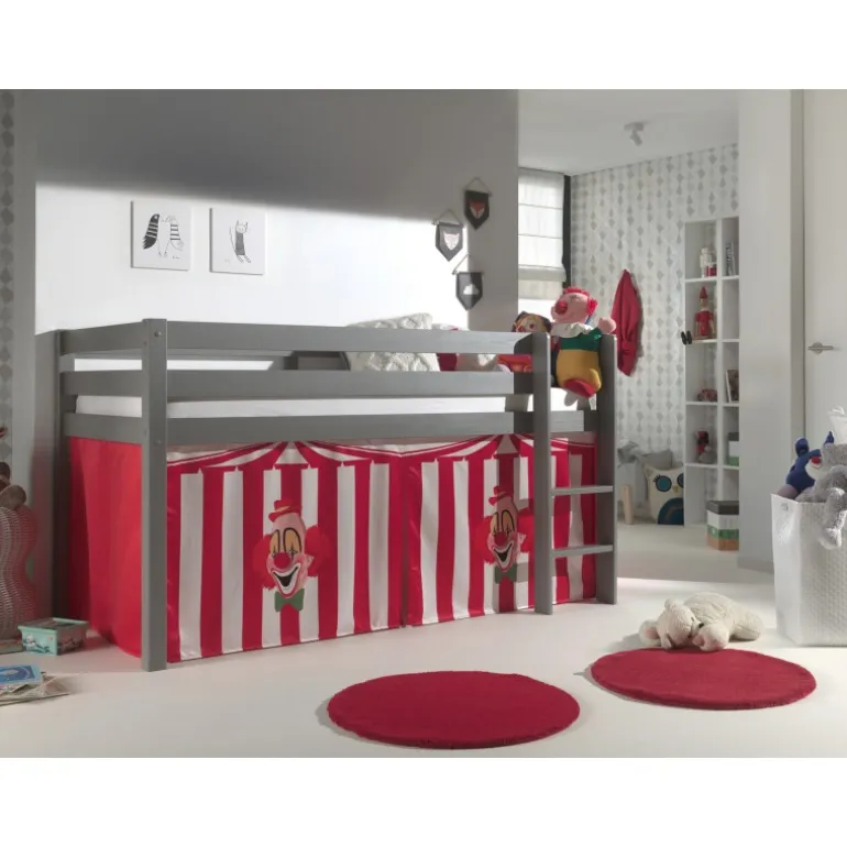 Legetæppe gardinsæt til halvhøj seng – Rød klovne-tema