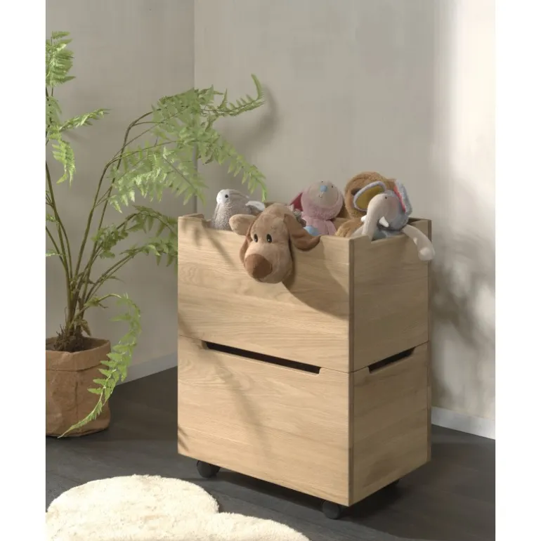 Legetøjskasse på hjul i eg – Forrest Oak, sæt med 2
