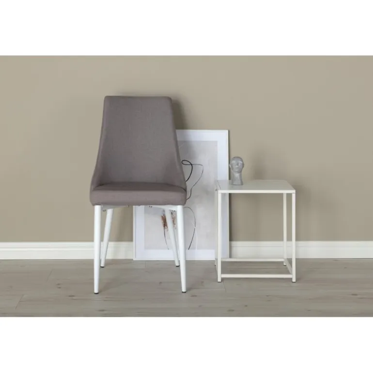 Undgå at gå på kompromis mellem komfort og design med en spisebordsstol fra Leone-serien! Den gennemtænkte, fuldt polstrede konstruktion er robust med ben i hvid pulverlakeret metal og ryg/sæde i mørkegrå polyesterstof med blød polstring. Enkel samling kræves. Plejeinstruktioner: Brug stofspray til at imprægnere stoffet før brug, hvilket også vil gøre det lettere at fjerne snavs og pletter i fremtiden. Fjern pletter straks, gnid ikke, men prøv forsigtigt at opsuge med en klud.