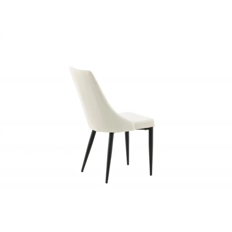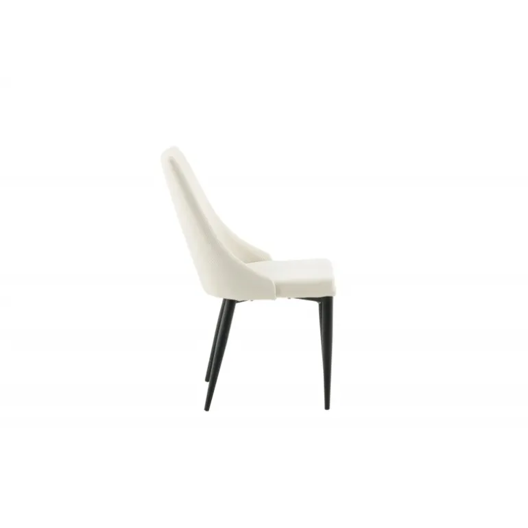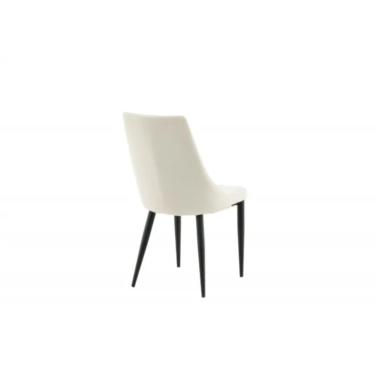 En trendy spisestuestol i blød fløjlstof vil helt sikkert skabe en hyggelig atmosfære i din stue! Leone spisestuestolen har et fuldt polstret klassisk design, ben i sort pulverlakeret metal og en høj ryg og sæde i creme/beige farve med blød polstring for ekstra komfort. Nogle samlekrav nødvendige. Her sidder du komfortabelt og behageligt i timevis! Plejeinstruktioner: Brug stofspray til at imprægnere stoffet før brug, hvilket også gør det lettere at fjerne snavs og pletter i fremtiden. Fjern pletter straks, gnid ikke, men prøv forsigtigt at suge dem op med en klud.