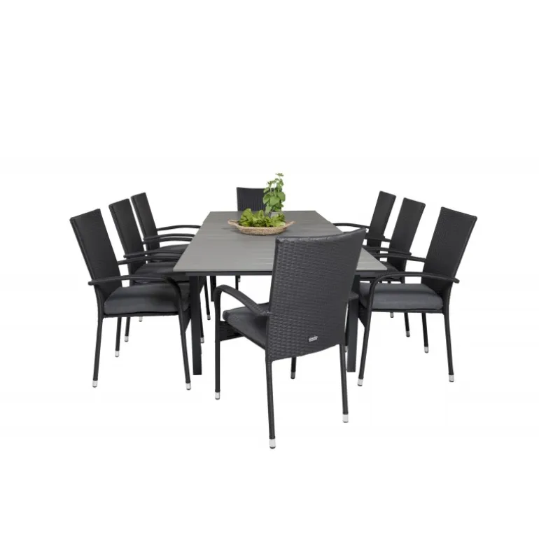 Med sin sorte og enkle fremtoning er kombinationen af spisebordet Levels og spisestolene Anna en favorit hos mange. Bordet er rummeligt – perfekt til at samle hele familien til sommerspisning!