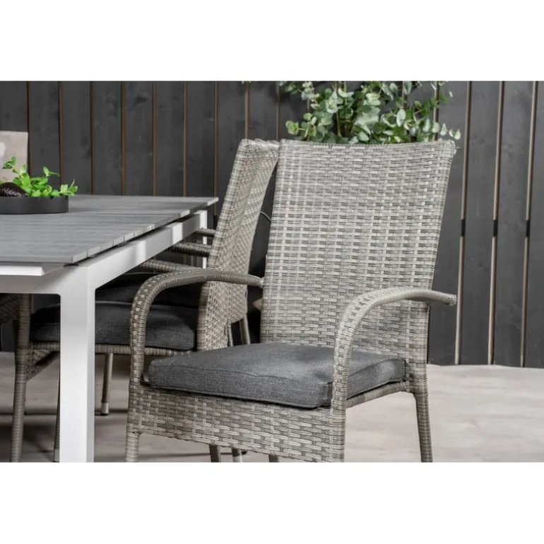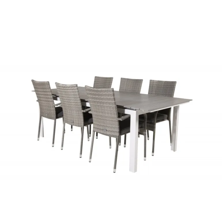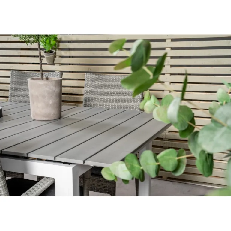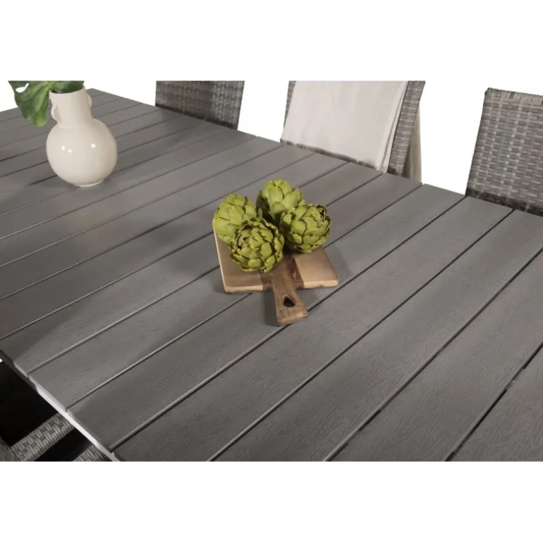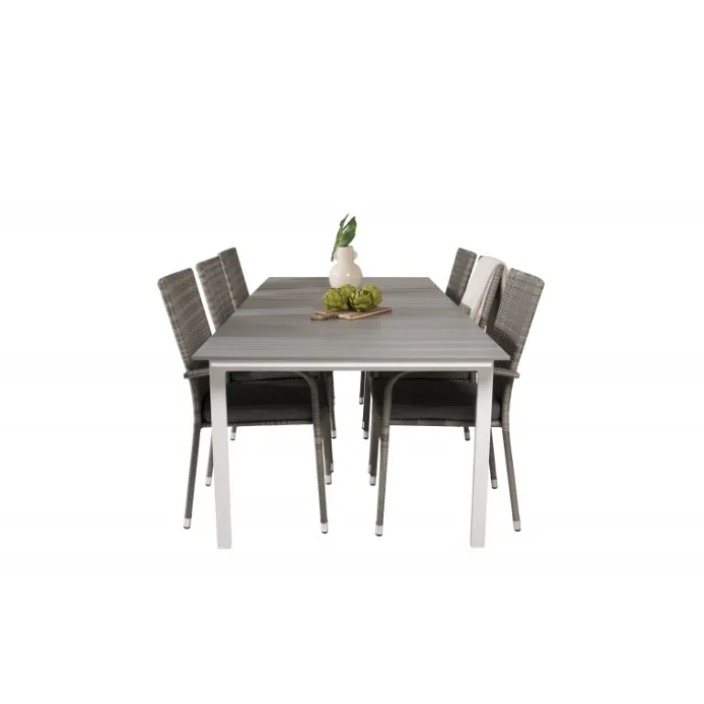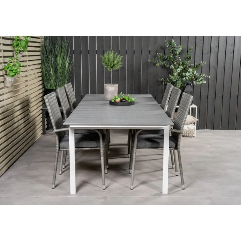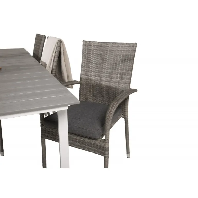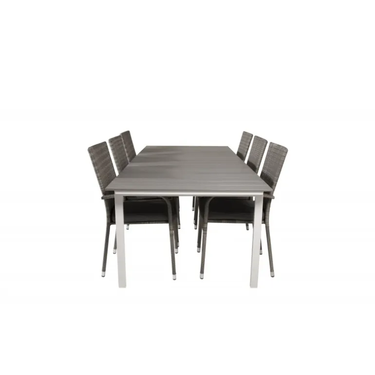 Opgrader din udendørs spiseoplevelse med Levels Rektangulært Loungesæt – Havemøbelsæt. Dette moderne og stilfulde Loungesæt – Havemøbelsæt består af spisebordet Levels og spisestole Anna, som tilsammen skaber et imponerende midtpunkt i din have. Bordpladen i aintwood og stellet i aluminium sikrer holdbarhed og let vedligeholdelse. Stolene i rattan og stål tilføjer et elegant touch og maksimal komfort. Perfekt til både små og store sammenkomster.