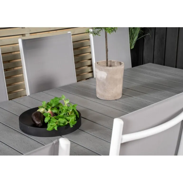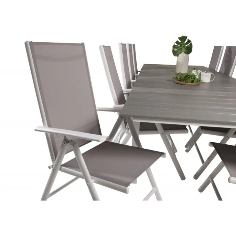 Moderne og hyggelig – det er følelsen, du får på terrassen eller altanen, når du vælger dette Loungesæt – Havemøbelsæt. Her kombineres vores udtrækkelige spisebord med foldestole fra Break-serien. Sid længe og nyd god mad og godt selskab!