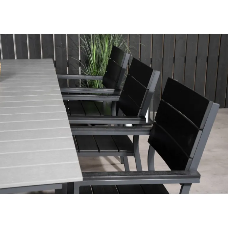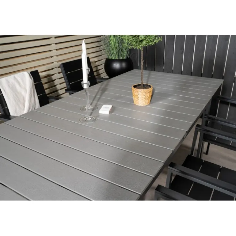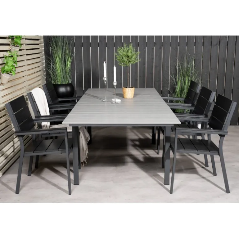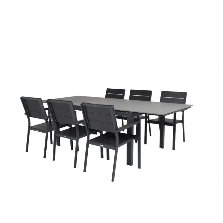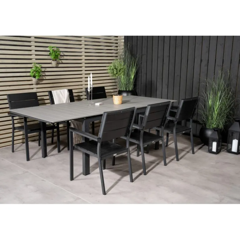 Med et udtrækkeligt spisebord og spisebordsstole fra Levels-serien får du en kombination, der passer til enhver terrasse! Dette Loungesæt – Havemøbelsæt er designet til at modstå tidens tand. Fremstillet af aintwood og aluminium, giver det en robust og stilfuld løsning til dine udendørs middagsselskaber. Bemærk, at det kræver simpel montering for at nyde dette elegante sæt.