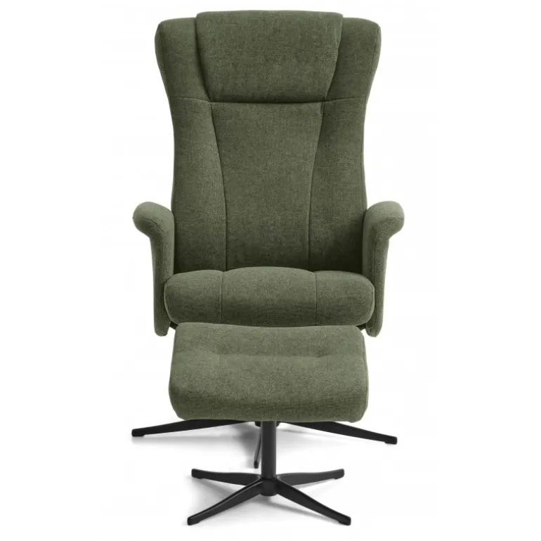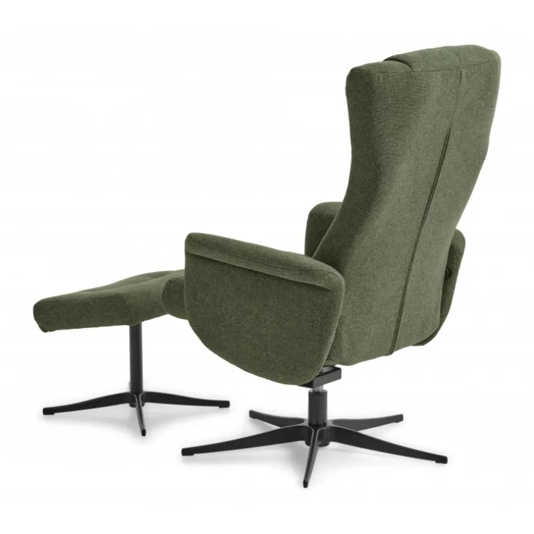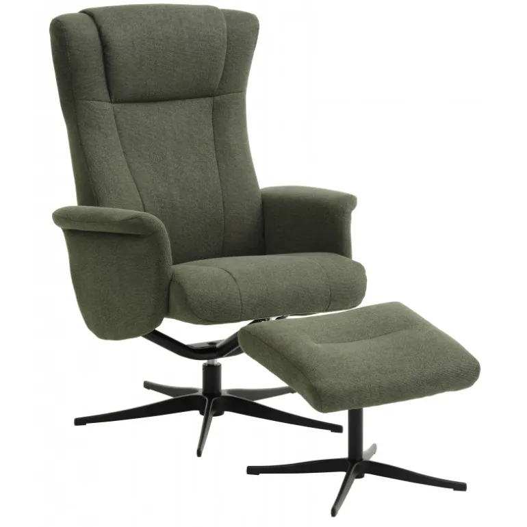 Liam lænestolen inklusiv skammel kombinerer luksus og komfort i et stilfuldt design. Denne lænestol er betrukket med holdbar polyesterstof i farven Winther Moss og har en moderne Austin-finish.