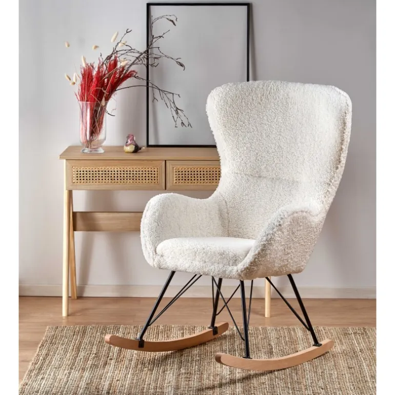 - Materialer af høj kvalitet: Bouclé stof, pulverlakeret stål og massivt træ.