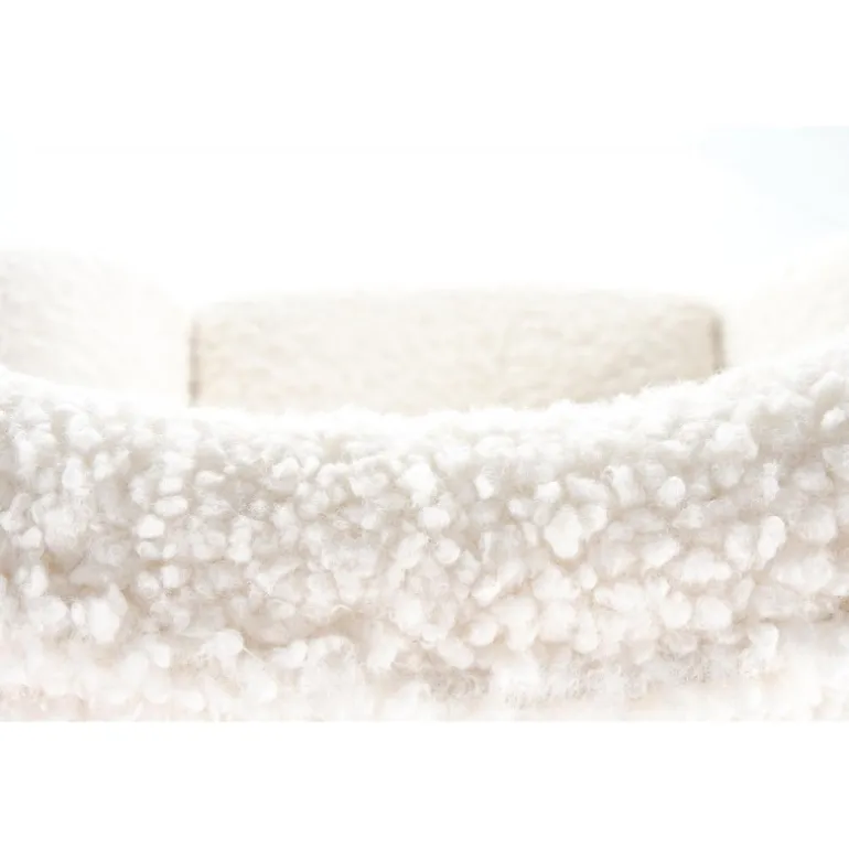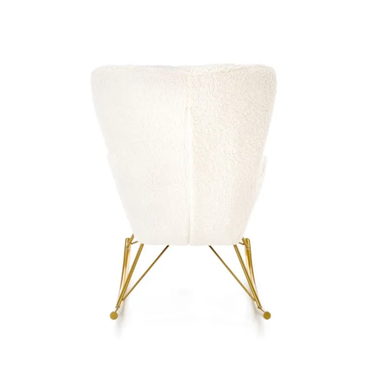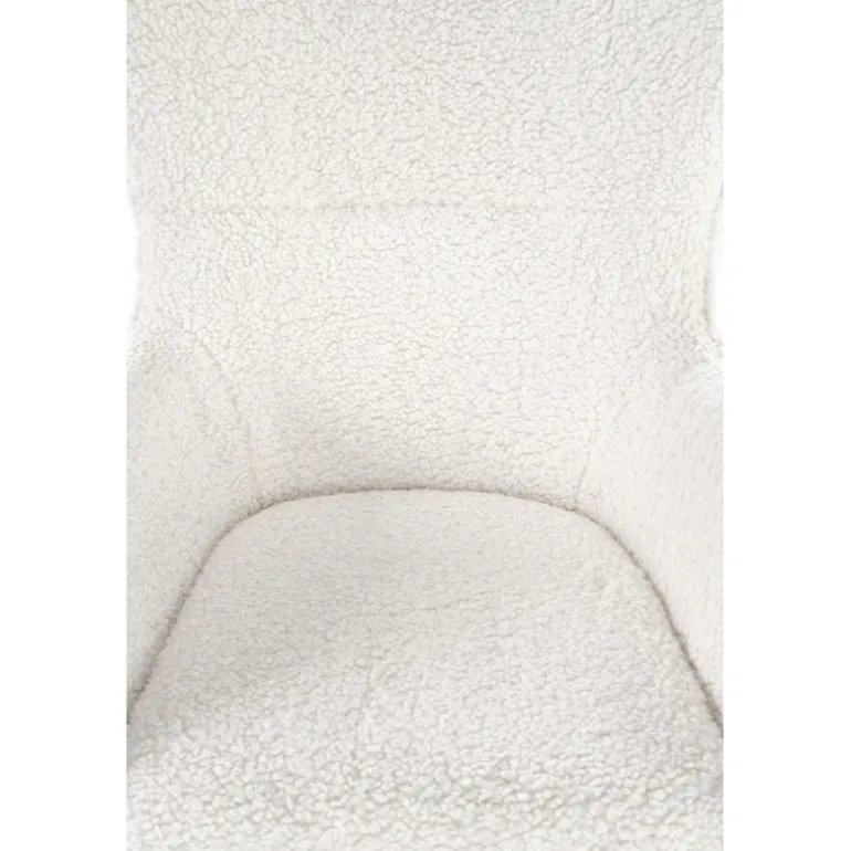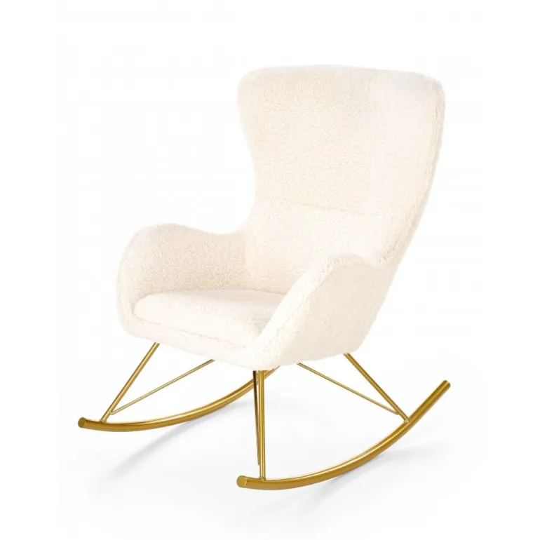 - Elegant Design: Cremefarvet bouclé-stof med gyldne ben i kromstål.