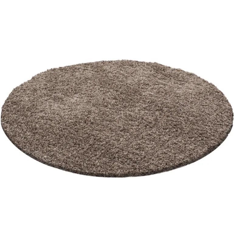 Life Rund Shaggy tæppe Ensfarvet – Mokka