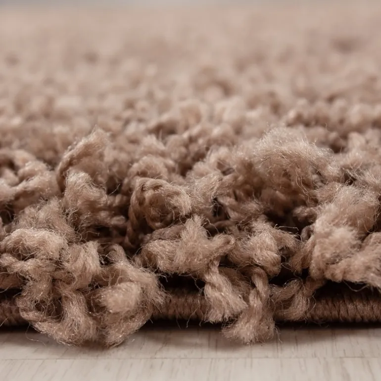 Life Rund Shaggy tæppe Ensfarvet - Mokka