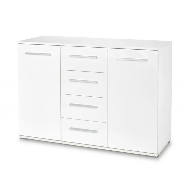 LIMA KM-4 Kommode i hvid er den perfekte tilføjelse til dit hjem. Med dimensionerne 116/40/82 cm passer denne stilfulde kommode nemt ind i ethvert rum. Lavet af lamineret spånplade og med en højglans finish, giver den et moderne og elegant udtryk. ABS-kanter sikrer holdbarheden og beskytter mod skader. Den hvide farve tilføjer en lys og frisk atmosfære til din indretning.