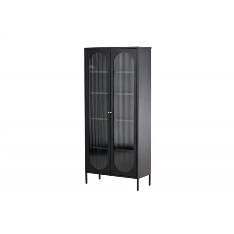 Med Lima stålkabinet får du et praktisk og stilfuldt møbel, der er perfekt til moderne boligindretning. Lima er et elegant sort skab lavet af stål, hvilket giver det en solid og holdbar konstruktion. Dets moderne og minimalistiske design vil være en smagfuld tilføjelse til dit hjem. Skabet har fire rummelige hylder, der tilbyder masser af plads til organisering. De to døre er lavet af bølget glas, hvilket tilføjer en interessant visuel dimension og et strejf af tekstur til møblet. Med Lima stålkabinet kan du kombinere funktionalitet med stil og skabe en elegant og organiseret atmosfære i dit hjem. Uanset om det er placeret i stuen, køkkenet eller soveværelset, vil Lima være et praktisk og visuelt tiltalende møbel i dit hjem.