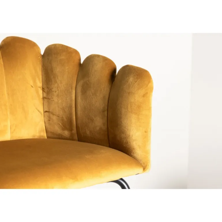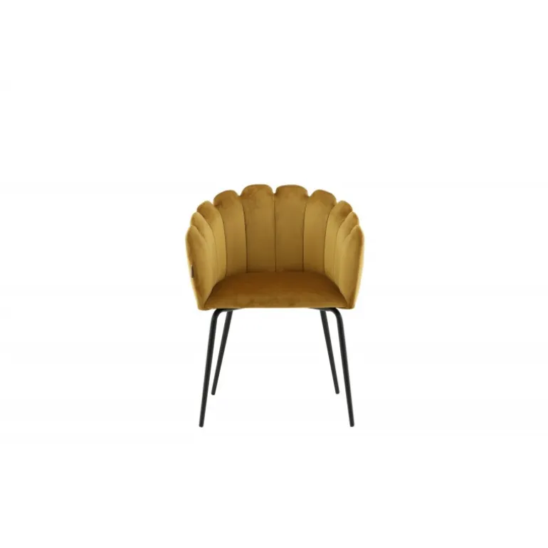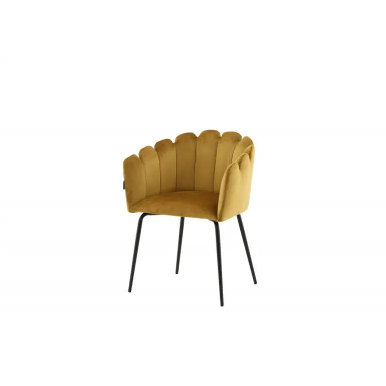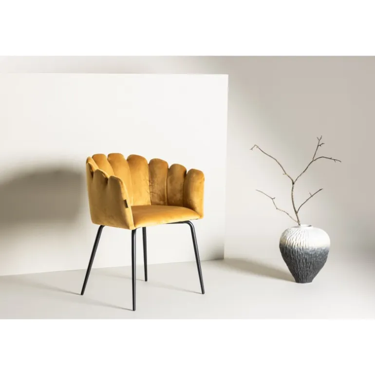 En moderne farveklat kan let løfte indretningen til næste niveau! Limhamn spisebordsstol er en moderne favorit i mange hjem. Den har et indbydende design med en dekorativ ryglæn formet som en muslingeskal med dekorative sømme og et afrundet sæde i gul fløjlsstof. Benene er i sort pulverlakeret metal. Skab en hyggelig focal point i hjertet af hjemmet! Nogle montering er påkrævet. Plejeinstruktioner: Brug stofspray til at imprægnere stoffet før brug, hvilket også gør det lettere at fjerne snavs og pletter i fremtiden. Fjern pletter straks, gnid ikke, men prøv forsigtigt at suge op med en klud.