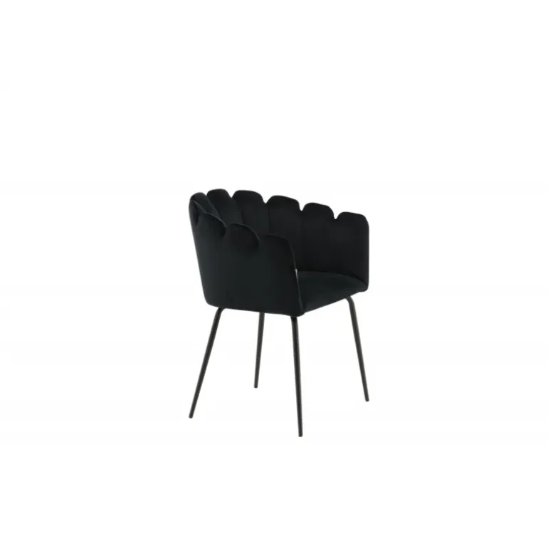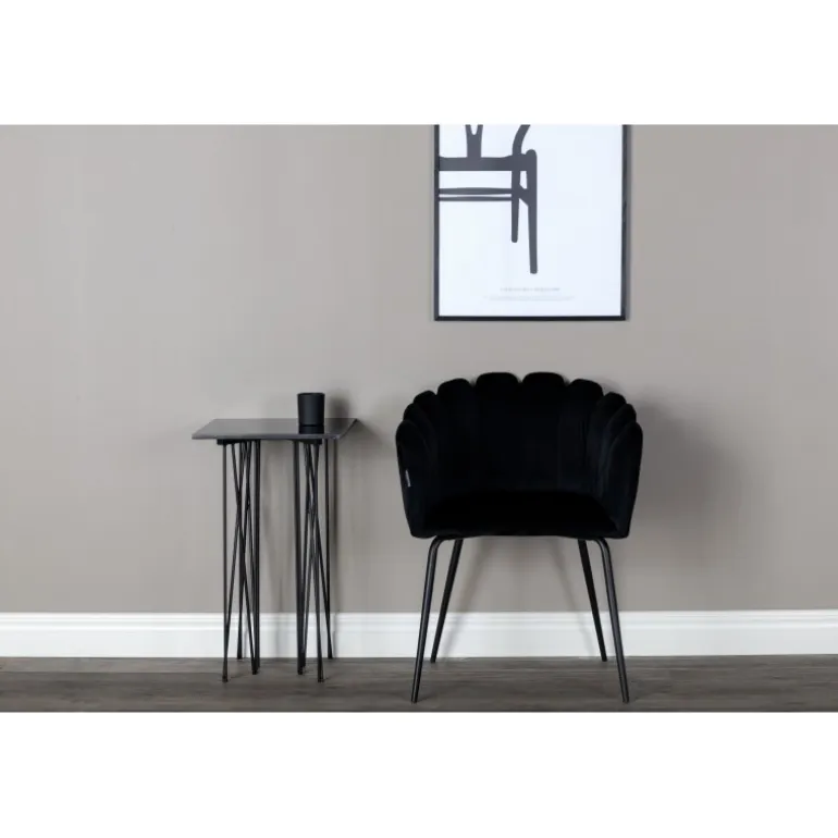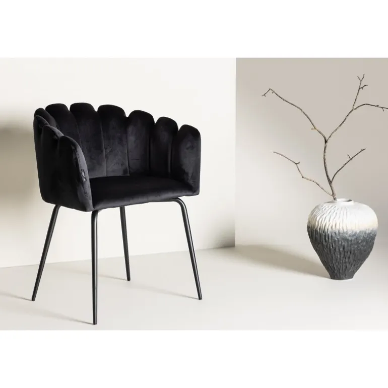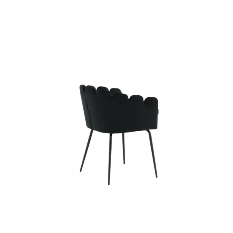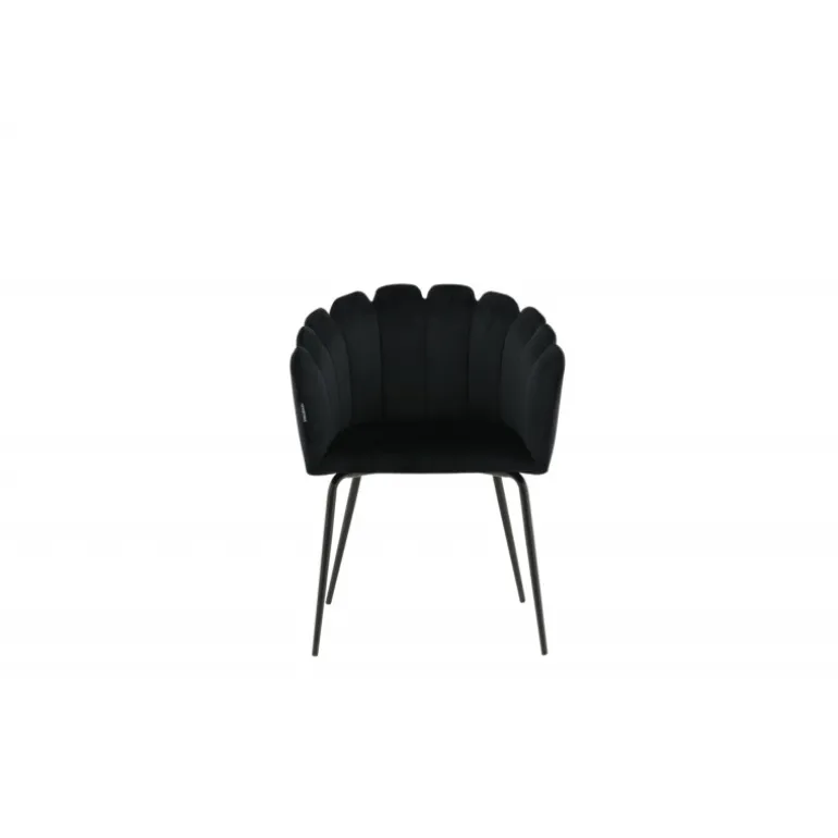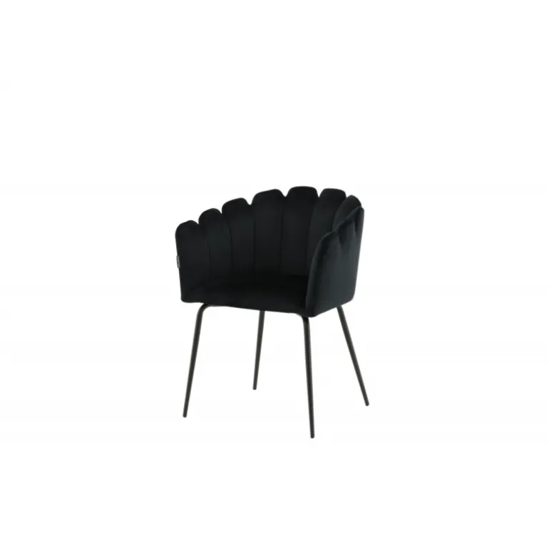 Elegant, tidløs og moderne – spisebordsstole med alle de rette elementer! Limhamn spisebordsstol er en moderne favorit i mange husholdninger. Den har et indbydende design med en dekorativ ryg i form af en muslingeskal med dekorative sømme og et rundt sæde i sort velour. Benene er i sort pulverlakeret metal. Skab et behageligt blikfang i hjertet af dit hjem! Enkel montering kræves. Plejeinstruktioner: Brug tekstilspray til at imprægnere stoffet, før du bruger det, hvilket også vil gøre det lettere at fjerne snavs og pletter i fremtiden. Fjern pletter straks, gnid ikke, men prøv forsigtigt at opsuge med en klud.