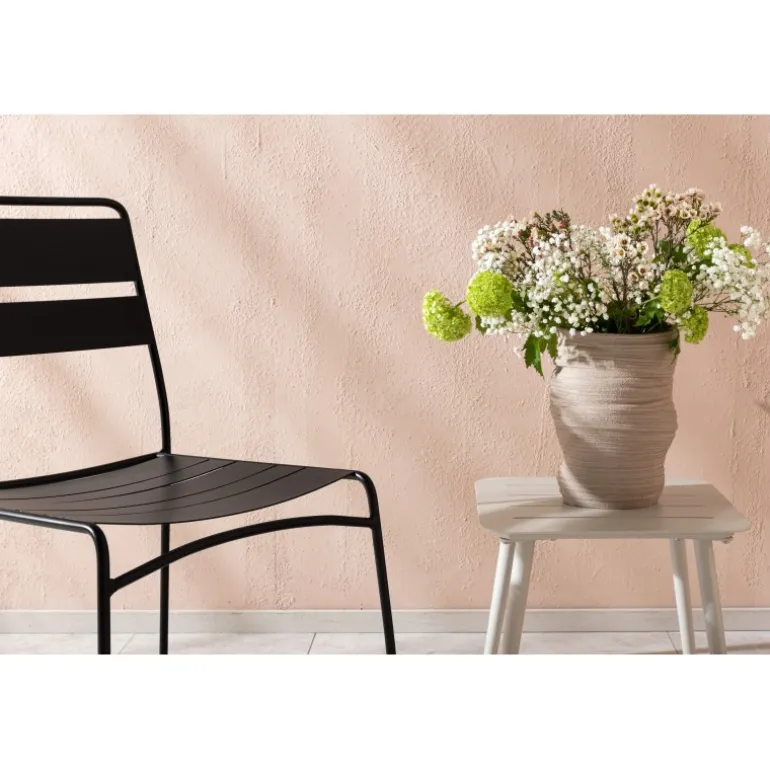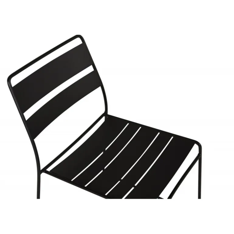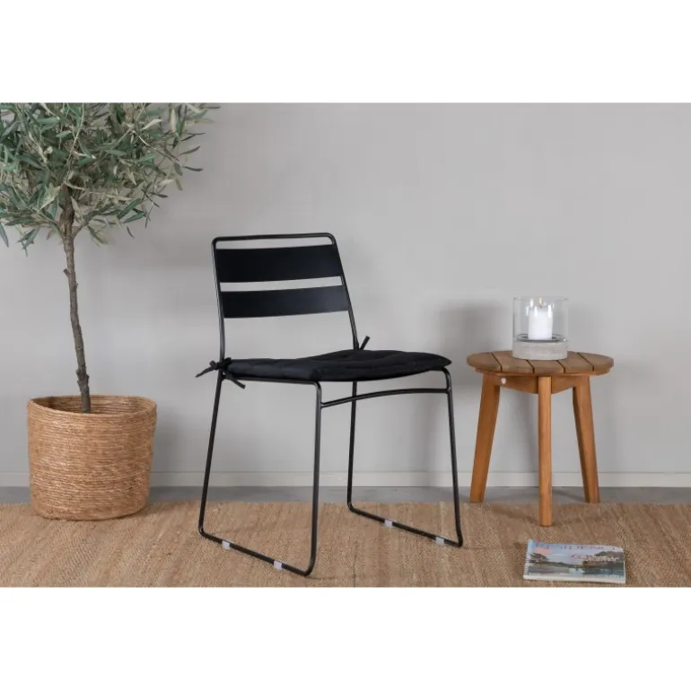 Lina er en stilfuld og enkel sort stålstol, der passer perfekt både i udendørsområder og på altanen. Det smalle design gør stolene nemme at justere og placere. Match med et lækkert spisebord og nyd måltider udendørs denne sommer! Hynde kan købes separat. Stolen er stabelbar. Plejeråd: Stål er et materiale, som afviser snavs og væsker, men vær opmærksom på, at vand kan forårsage pletter og rust. Sørg derfor for at tørre overfladen af med en blød, fugtig klud og sæbevand for at undgå rustdannelse.