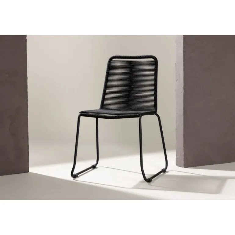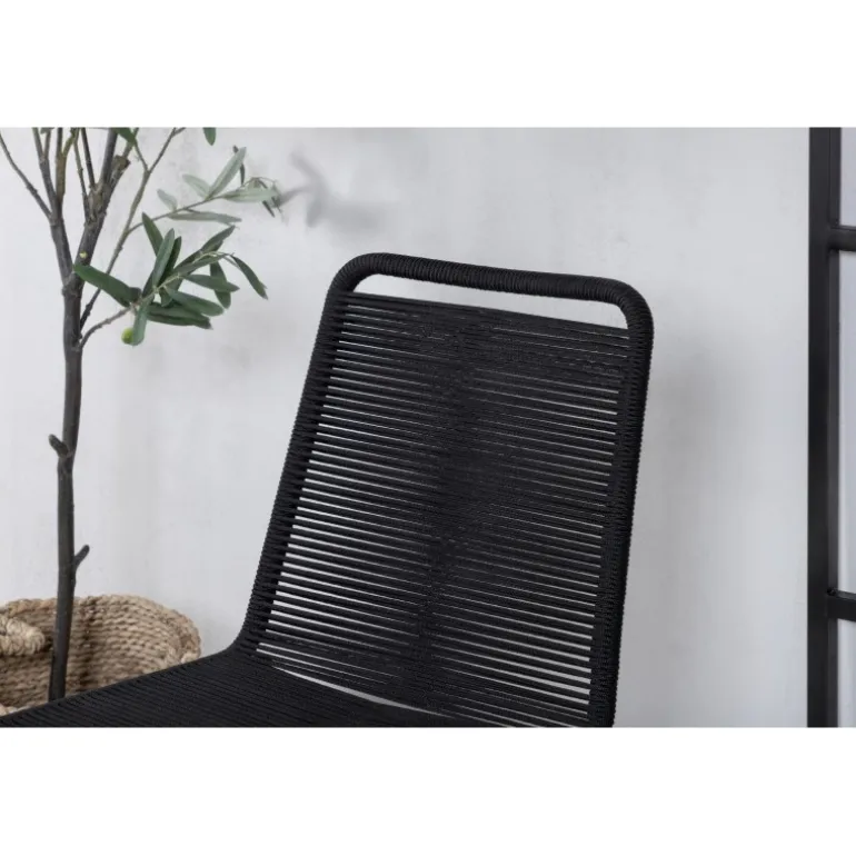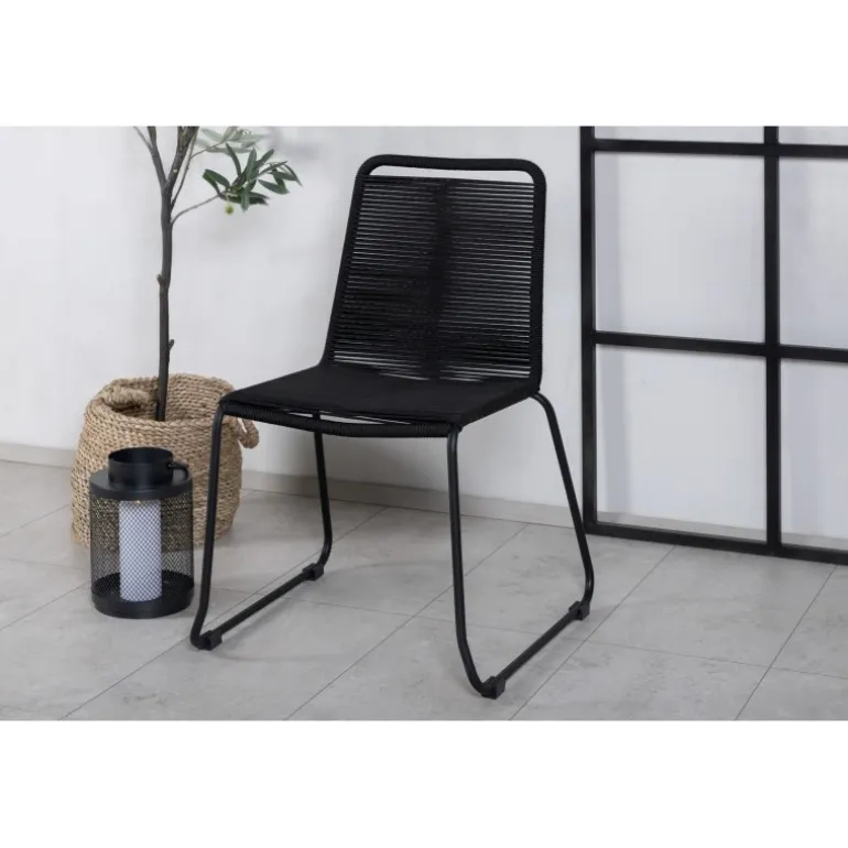 Lindos i sit tidløse og stilfulde design gør sig perfekt sammen med andet haveinventar. Takket være det holdbare materiale i reb og den klassiske sorte farve, er den blevet en favorit i mange husholdninger. Kombinér med et lækkert spisebord og nyd måltider udendørs denne sommer! Stolen er stabelbar. Plejevejledning: Vores reb er lavet af høj kvalitet spundet polyester, som er nem at rengøre. Møblerne er behandlet til at modstå 500-2000 timers sollys. Vi anbefaler sæbe og vand til rengøring. Lad lufttørre. For områder, der er sværere at nå, kan en lille børste bruges forsigtigt. Brug aldrig højtryksrenser eller stærke kemikalier til at rengøre rebet.