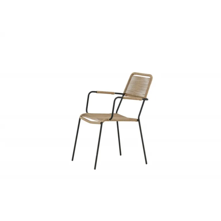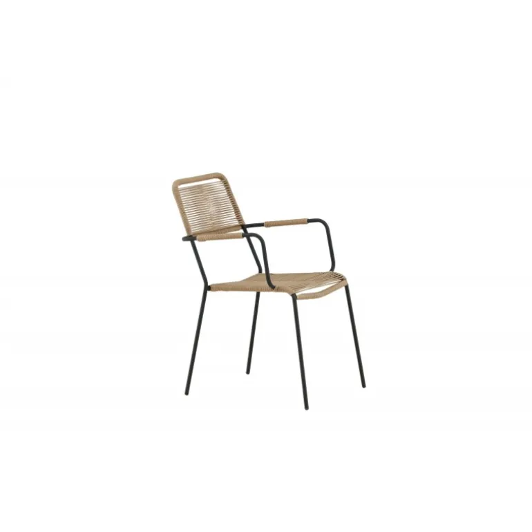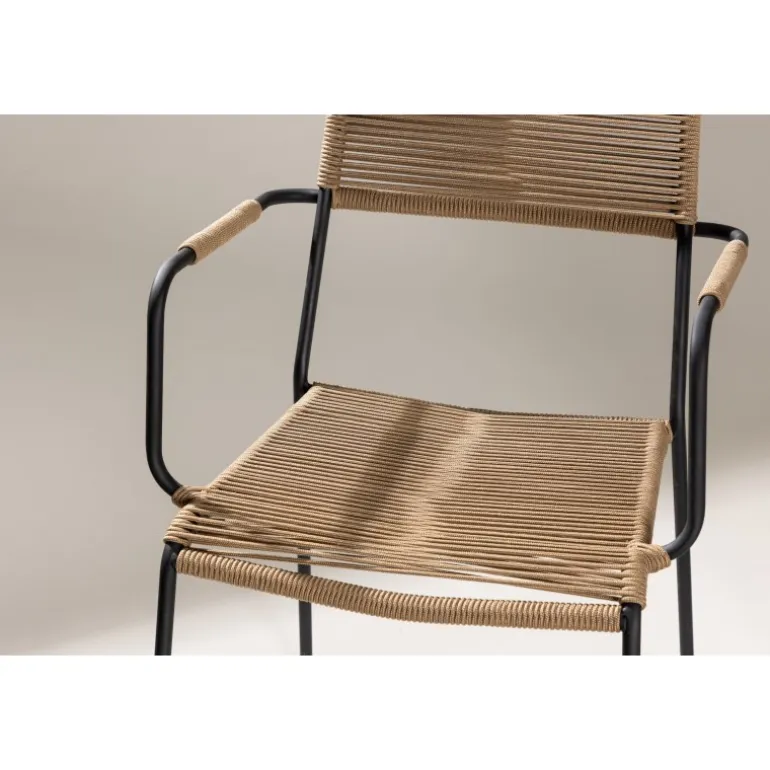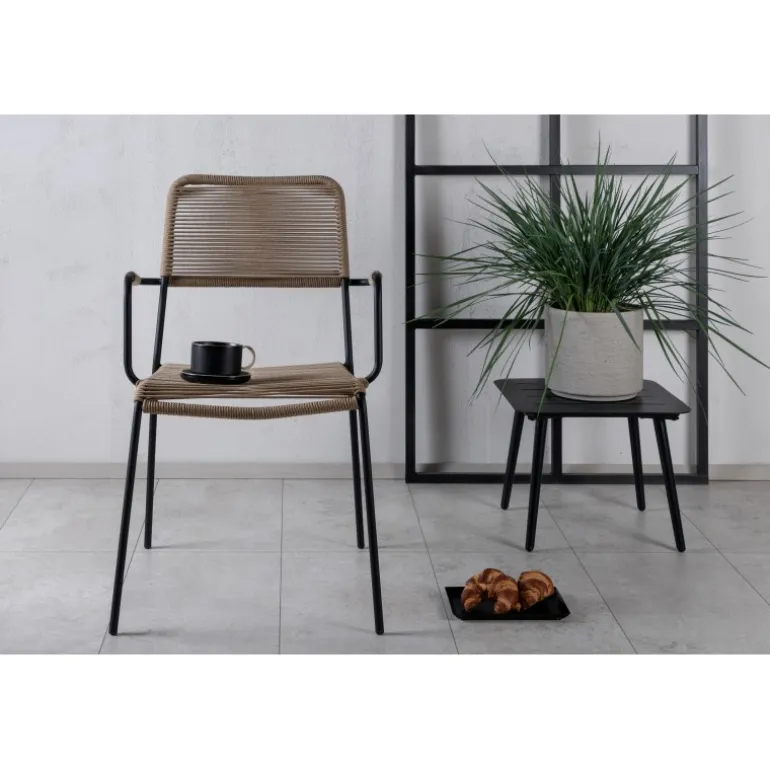 Indret terrassen med moderne jordfarver og elegante Havestole fra Lindos-serien. Armlænene er lavet af sort aluminiumskonstruktion, og sædet er i beige/brun vævet reb. Lindos er en ægte designikon, der passer både i klassiske og moderne miljøer. Inviter til mange sociale øjeblikke fremover! Stolen er stabelbar. Plejeråd: Vores reb er kvalitetsspundet polyester, som er let at rengøre. Møblerne er behandlet til at modstå 500-2000 timer. Vi anbefaler sæbe og vand til rengøring. Lad lufttørre. Til de områder, der er sværere at nå, kan en lille børste bruges forsigtigt. Brug aldrig højtryksrenser eller stærke kemikalier til at rengøre rebet.