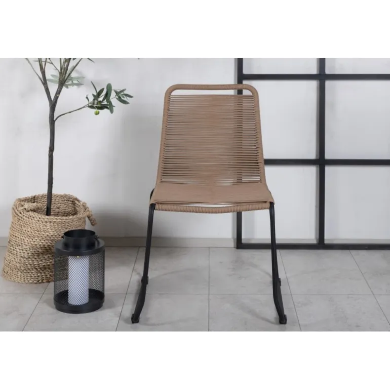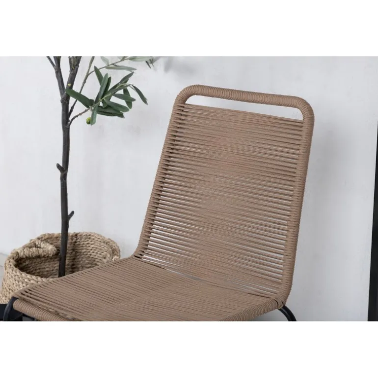 En stilfuld favorit! Den smukke naturlige farve på vores Lindos Havestol skaber en harmonisk følelse i alle udendørs områder. Fremstillet af holdbare materialer og reb i en jordnær beige nuance. Nyd måltider udendørs denne sommer! Stolen er stabelbar. Plejeråd: Vores reb er kvalitets-spundet polyesterreb, der er let at rengøre. Møblerne er behandlet til at modstå 500-2000 timer. Vi anbefaler sæbe og vand til rengøring. Lad lufttørre. For de områder, der er sværere at nå, kan en lille børste bruges forsigtigt. Brug aldrig højtryksrenser eller stærke kemikalier til at rengøre rebet.