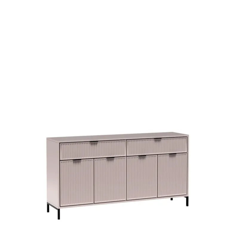 LINKaSTYLE kommode LS1 kashmir er en elegant og funktionel løsning til dit hjem. Med dimensioner på 165 cm i længde, 40,6 cm i dybde og 86,1 cm i højde, tilbyder denne kommode rigelig opbevaringsplads uden at fylde for meget. Kroppen er lavet af lamineret spånplade, som sikrer holdbarhed, mens fronten er af MDF-spånplade for et glat og stilfuldt look. Kanterne er belagt med ABS-finer, og bagsiden er lavet af HDF-spånplade, hvilket giver ekstra stabilitet. Kommoden står på metalben, der er 12 cm høje, og de blødlukkende metalhængsler sikrer en problemfri og lydløs brug.