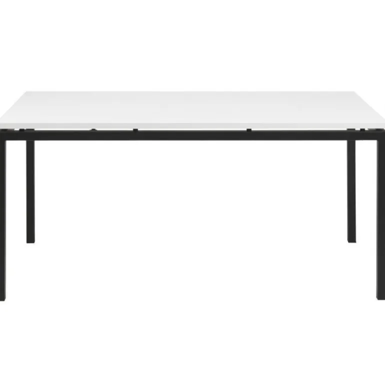 Elegant spisebordssæt i funktionelt design med slankt sort stålstel og hvidlakeret bordplade. Livorna spisebordet 160x90cm er udført med rene linjer og har et indbydende udtryk, som går godt i spænd med mange stilarter.