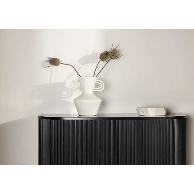 Lad os introducere Loca, den ultimative kombination af stil og funktionalitet til dit moderne hjem. Dette sidebord er fremstillet af MDF-materiale i en dristig sort nuance og prydet med sublime ribbedetaljer, der hæver det over det almindelige. Uanset om du søger et sidebord eller et TV-stativ, tilbyder Loca et fleksibelt design, der passer perfekt ind i din indretning.