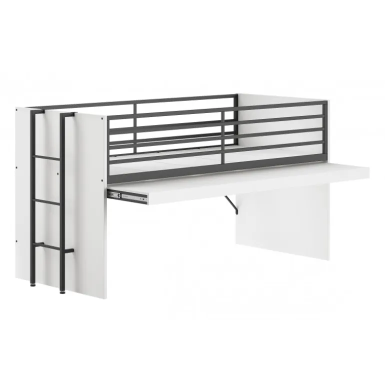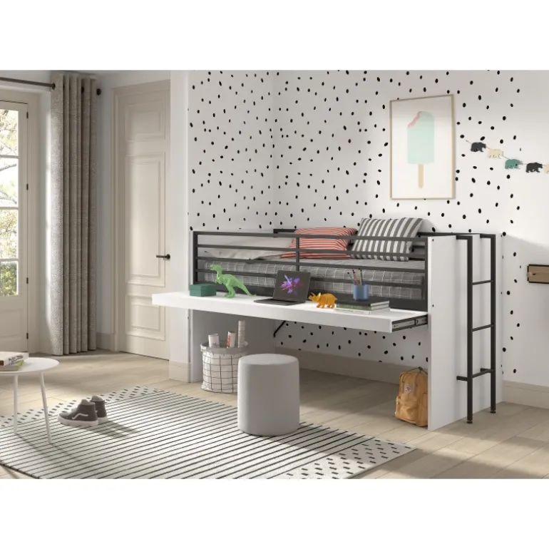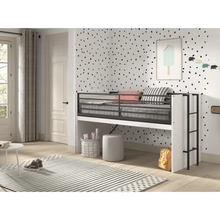 Loftseng til børn 90×200 – Sam halvhøj seng, hvid/sort