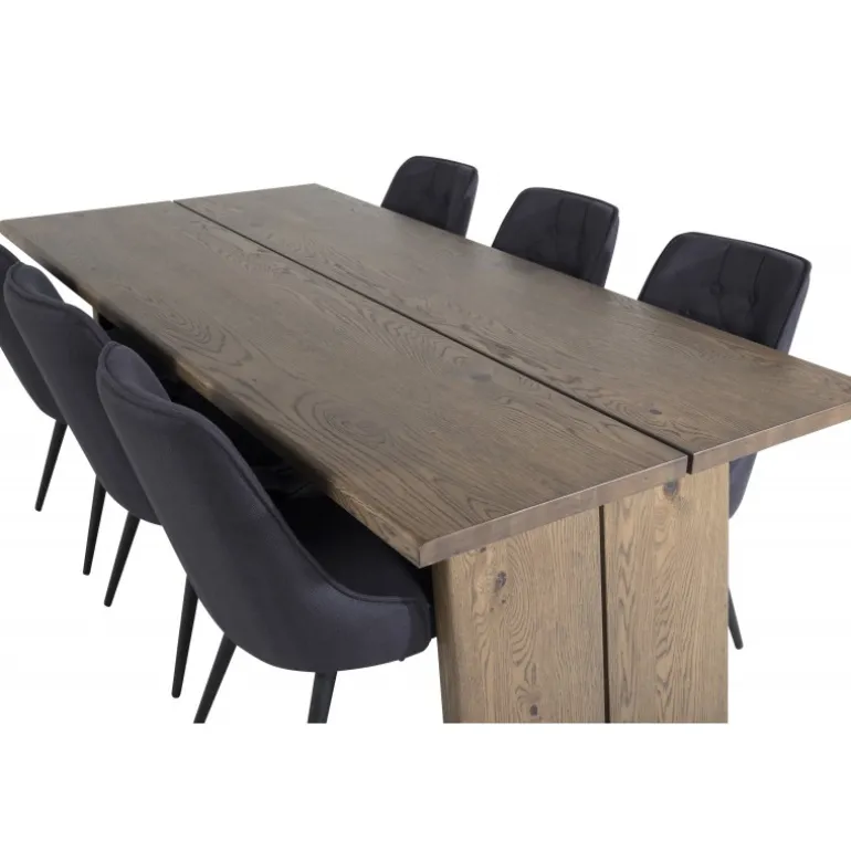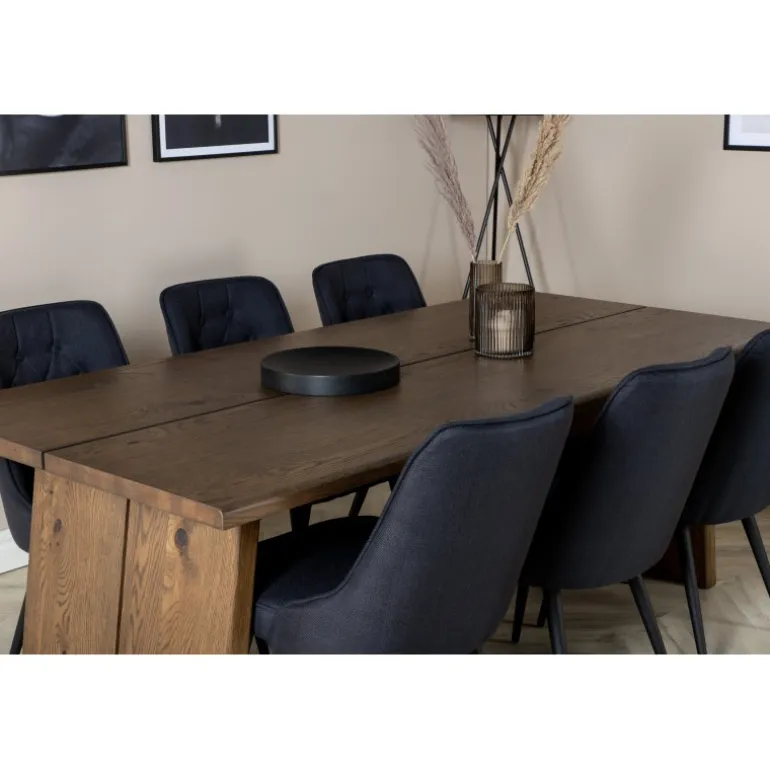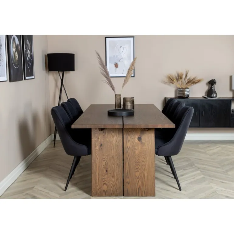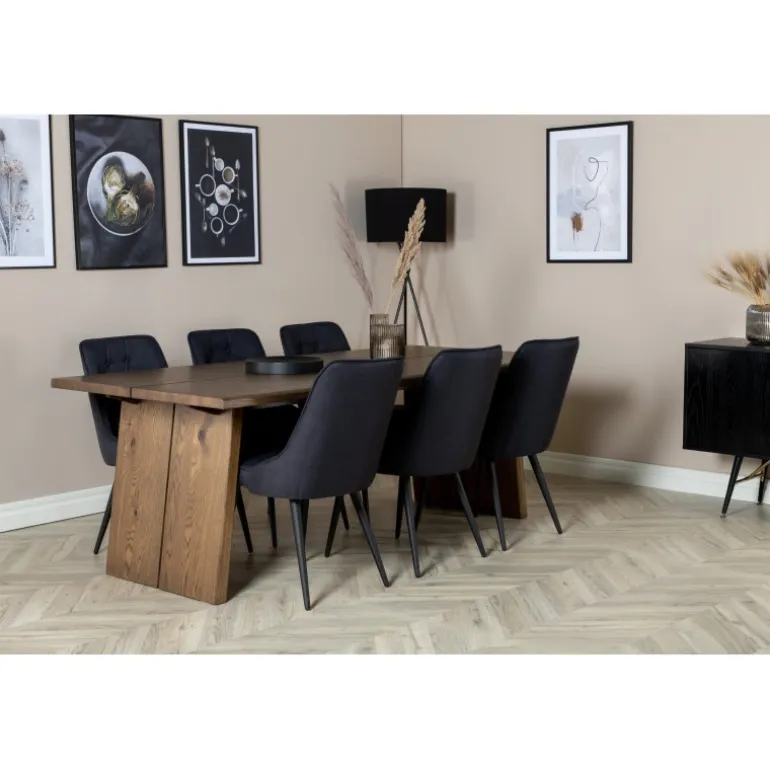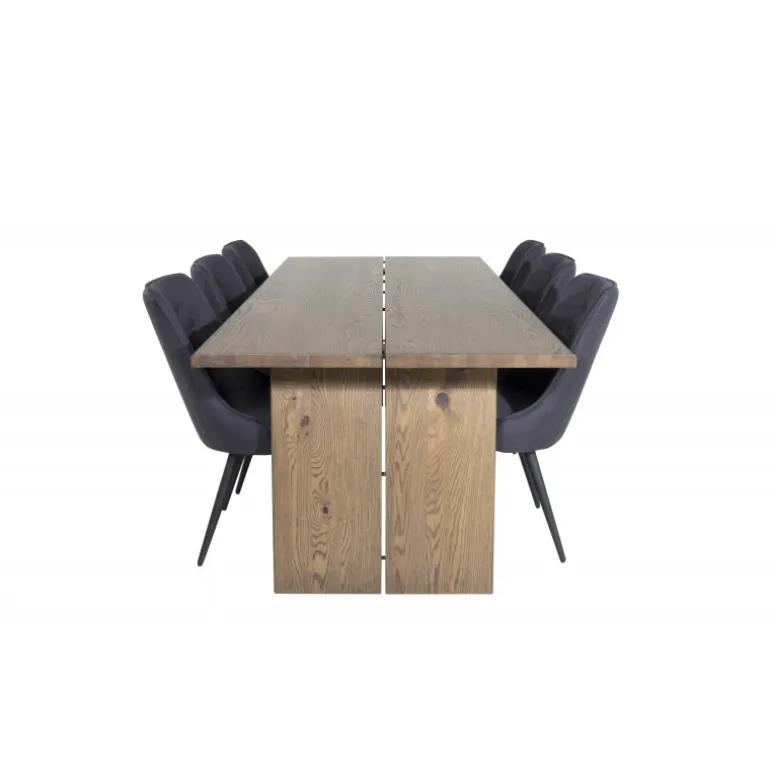 Trend-sikkert og komfortabelt Spisebordssæt, der har plads til alle! Her er vores udvidelige spisebord Logger kombineret med vores siddevenlige spisebordsstole i Velvet-serien. Lad det rustikke trælook og den tidløse farvekombination pryde dit hjem!