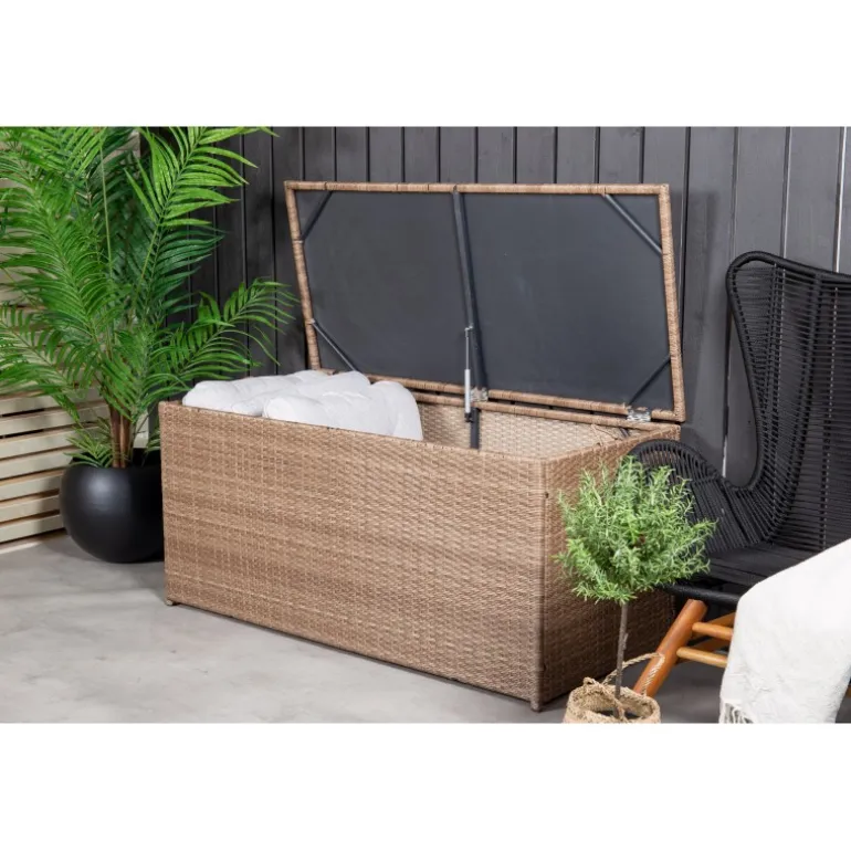 Opbevar dine hynder til udendørsmøbler på en pæn og praktisk måde med hjælp fra London Hyndeboks i naturlig farve! Med en rummelig hyndeboks kan du forlænge hyndernes levetid – en smart opbevaringsløsning, der fungerer lige så godt i forteltet som på altanen eller balkonen. Konstrite er et plastmateriale, der er perfekt til vores skandinaviske klima. Materialet er UV-resistent og kan modstå vejr og vind. At det er UV-resistent betyder, at møblerne ikke falmer, men vi anbefaler altid at opbevare møblerne under et møbelbeskyttelse eller på anden måde tørt og køligt for at forlænge levetiden.