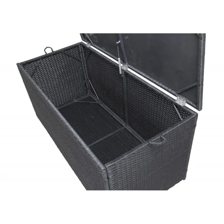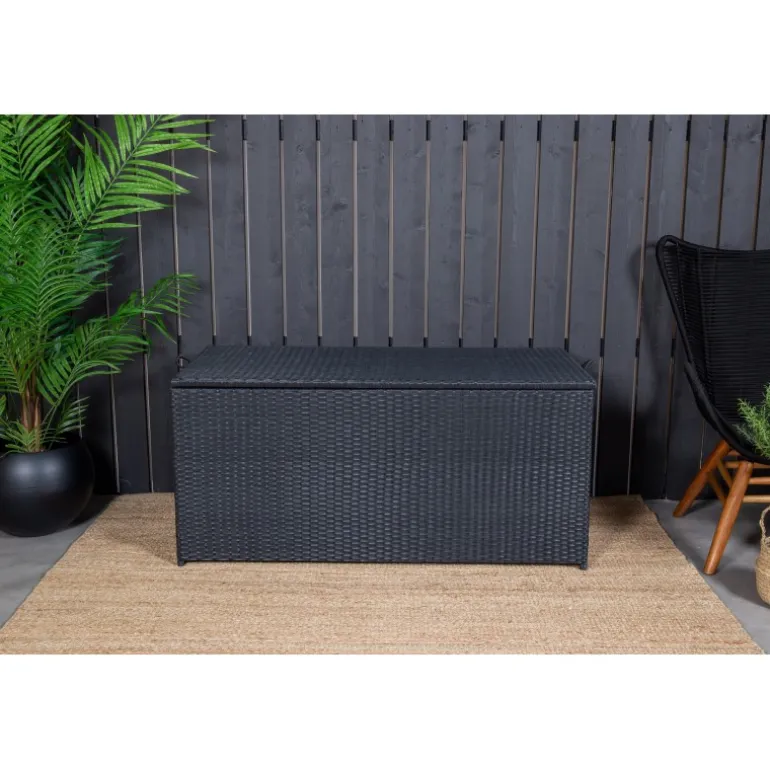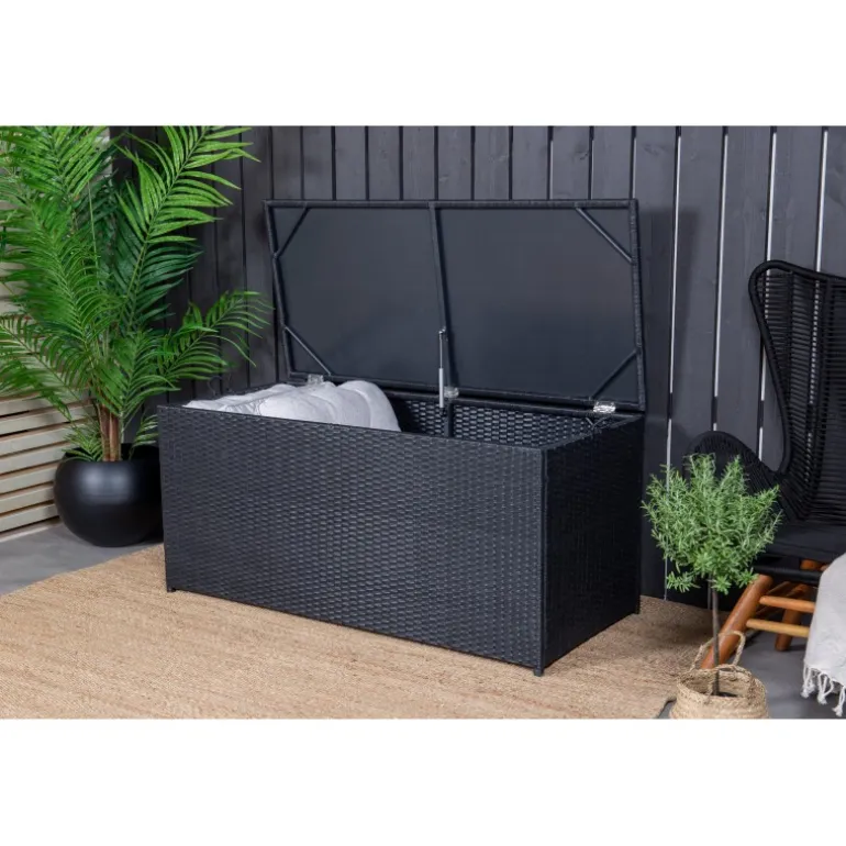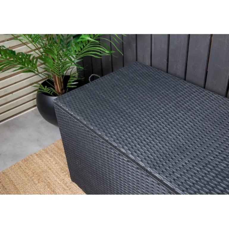 Opbevar dine hynder til udendørsmøbler på en pæn og praktisk måde med London Hyndeboks i sort farve! Med en rummelig hyndeboks kan du forlænge hyndernes levetid – en smart opbevaringsløsning, der fungerer lige så godt under markisen som på altanen eller balkonen. Konstrite er et plastmateriale, der er perfekt til vores skandinaviske klima. Materialet er UV-resistent og kan tåle vejr og vind. Selvom materialet er UV-resistent og dermed ikke falmer, anbefaler vi altid at opbevare møblerne under et møbelovertræk eller på et tørt og køligt sted for at forlænge levetiden.