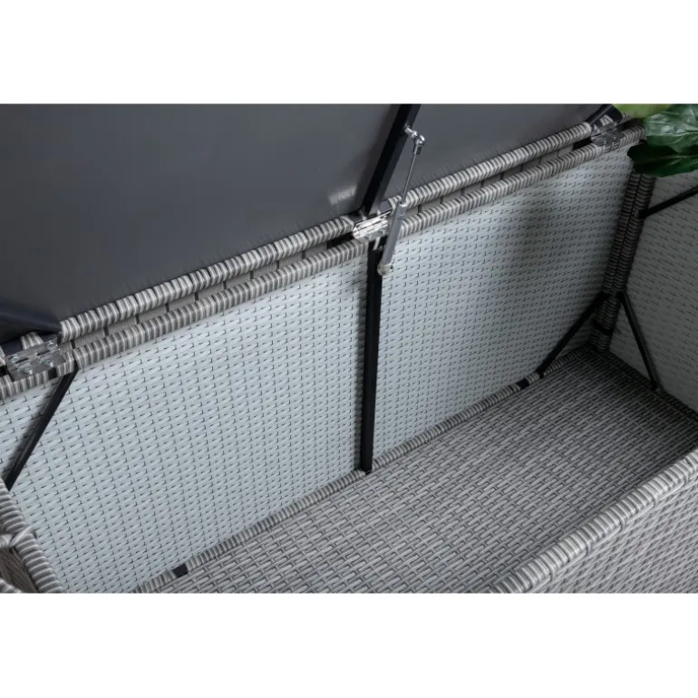 Opbevar dine hynder til udendørs møbler på en pæn og praktisk måde med London Opbevaringsboks! Med en rummelig grå opbevaringsboks kan du forlænge levetiden på dine hynder – en smart opbevaringsløsning, der fungerer lige så godt på terrassen som på altanen. Konstrit er et plastmateriale, der er perfekt til vores skandinaviske klima. Materialet er UV-resistent og kan modstå vejr og vind. Selvom det er UV-resistent og ikke falmer, anbefaler vi altid at opbevare møblerne under et møbelovertræk eller et andet tørt og køligt sted for at forlænge levetiden.