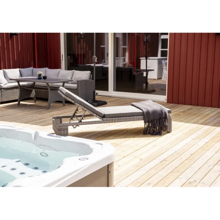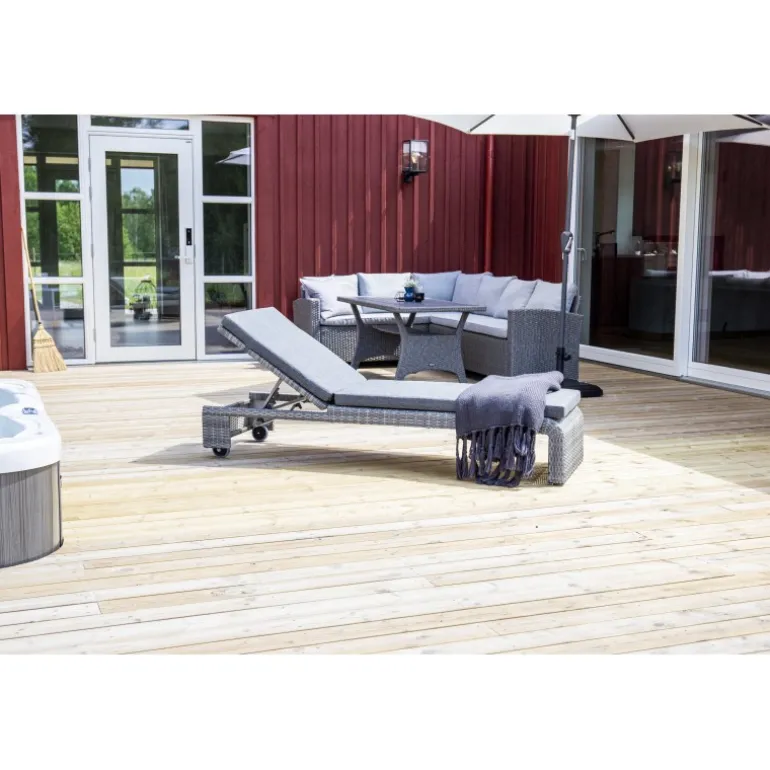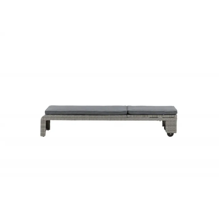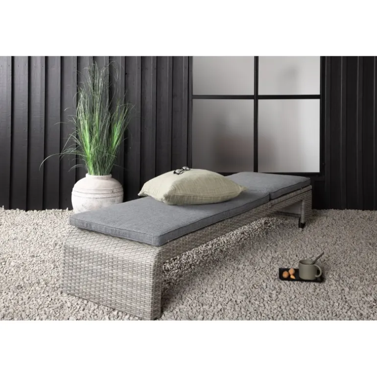 Stilfuldt og luksuriøst design gør denne solseng fra London-serien til et behageligt blikfang på din terrasse. Her får du en grå solseng med grå hynde, hjul og justerbar ryglæn for den optimale hvileposition. Solsengen er lavet af kunstig rattan, hvilket gør den holdbar i et udendørsmiljø. Robust, stabil og komfortabel – her kan du nyde frie øjeblikke på sommerens solrige dage. Plejeanvisning: Konstrite er et plastmateriale, der er perfekt til vores skandinaviske klima. Materialet er UV-resistent og kan modstå vejr og vind. Det faktum, at det er UV-resistent, betyder, at møblerne ikke falmer, men vi anbefaler altid at opbevare møblerne under en møbelbeskyttelse eller ellers tørt og køligt for at forlænge levetiden.