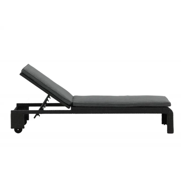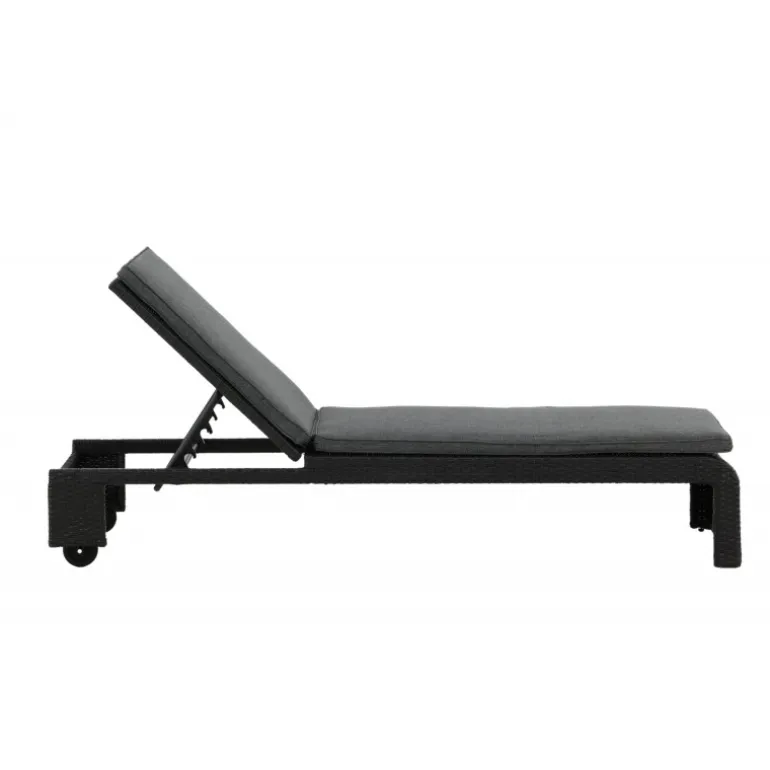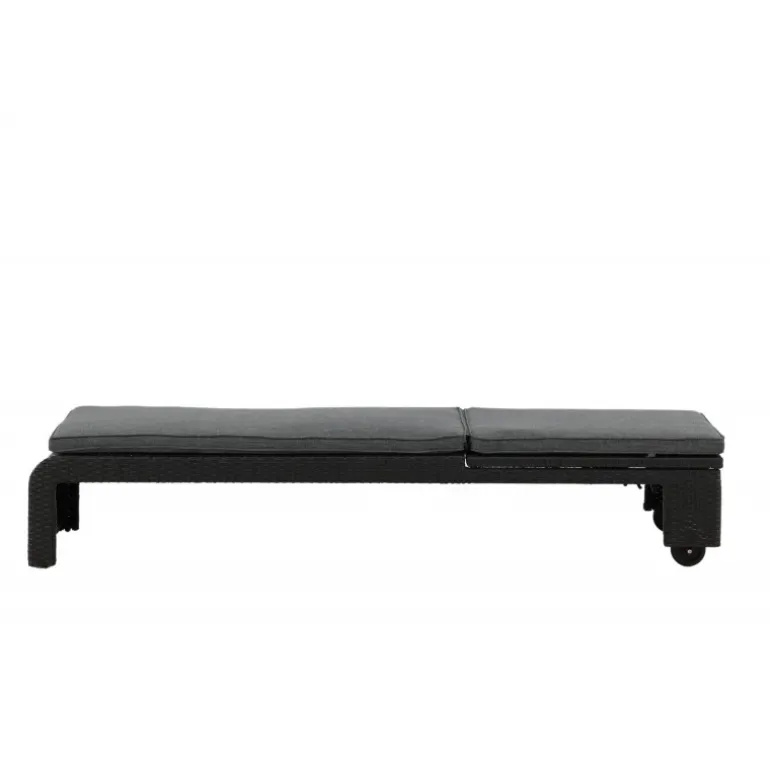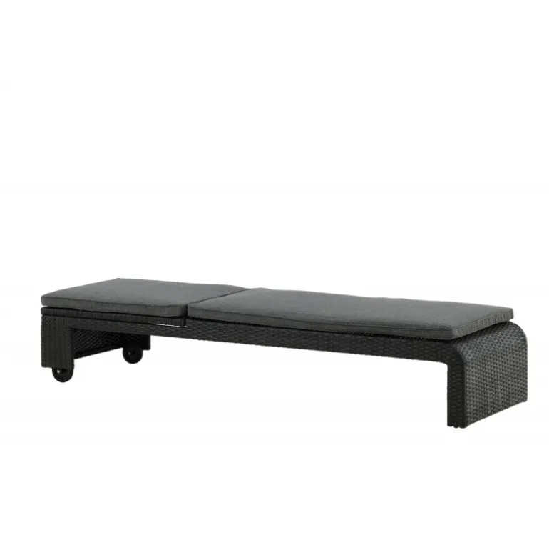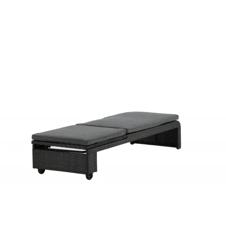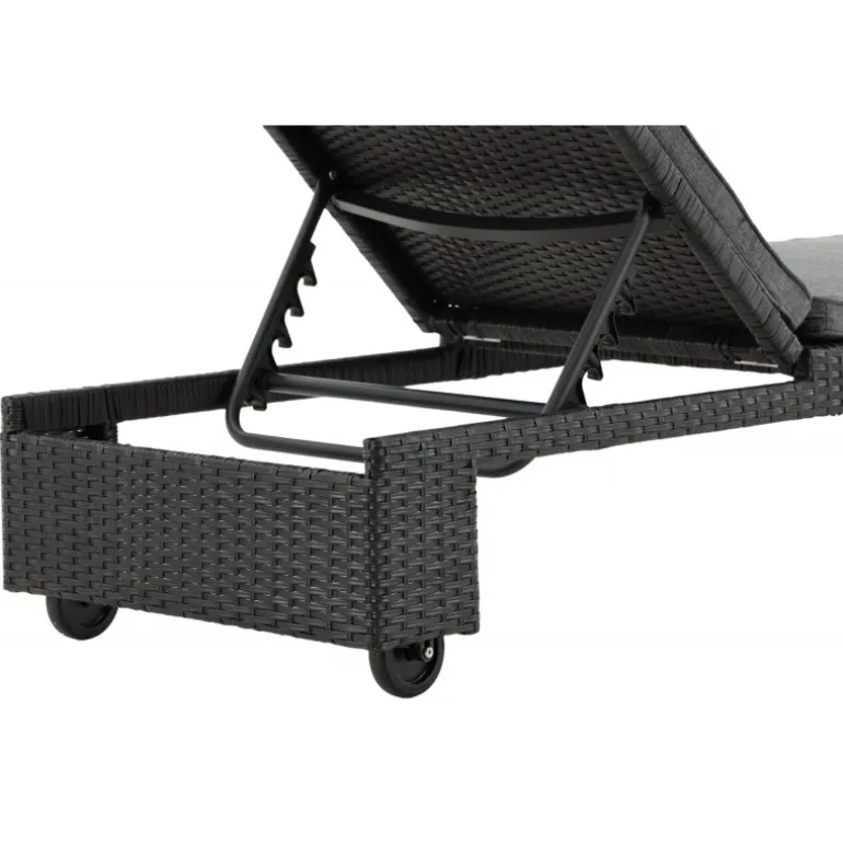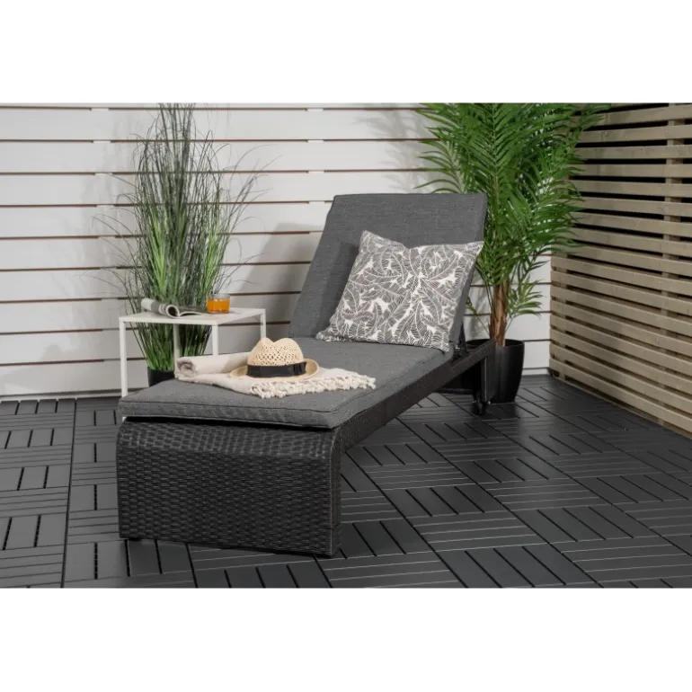 London solseng i et stilfuldt og pompøst design skaber en behagelig blikfang på din terrasse. Her får du en sort solseng med grå hynde, hjul og justerbar ryglæn for den optimale hvileposition. Solsengen er lavet af sort kunstig rattan, hvilket gør den holdbar i et udendørs miljø. Robust, stabil og komfortabel – her kan du nyde frie øjeblikke på sommerens solrige dage. Plejeråd: Konstrits er et plastmateriale, der er perfekt til vores skandinaviske klima. Materialet er UV-resistent og kan modstå vejr og vind. Det faktum, at det er UV-resistent betyder, at møblerne ikke falmer, men vi anbefaler altid at opbevare møblerne under et møbelovertræk eller på en anden tør og kølig måde for at forlænge levetiden.