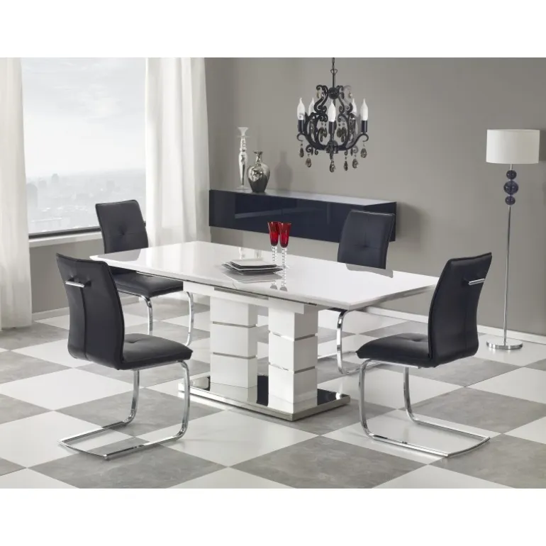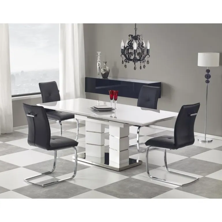 LORD bordet i hvid er en elegant og funktionel tilføjelse til dit hjem. Dette forlængelsesbord er ideelt til både hverdagsbrug og særlige lejligheder. Med dimensionerne 160÷200/90/75 cm giver det fleksibilitet til at rumme flere gæster. Bordet er fremstillet af lakeret MDF og rustfrit stål, hvilket sikrer holdbarhed og en moderne stil. Perfekt til enhver spisestue eller køkken.