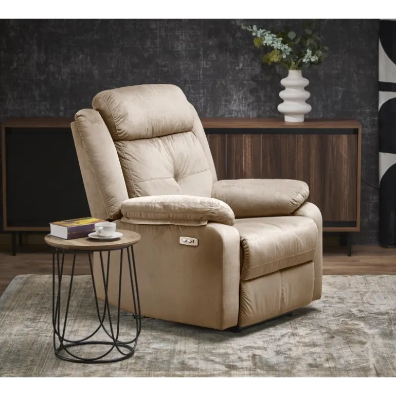 Oplev ultimativ komfort med LORIS lænestol i elegant beige. Denne lænestol er designet til at give dig en afslappende oplevelse med sin elektriske foldemekanisme og praktiske USB-stik. Med dimensionerne 85/95-162/105/45 cm passer den perfekt ind i enhver stue. Lænestolen er fremstillet af høj kvalitetsstof, der sikrer både holdbarhed og et stilfuldt udseende.