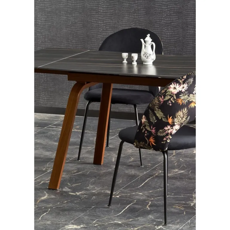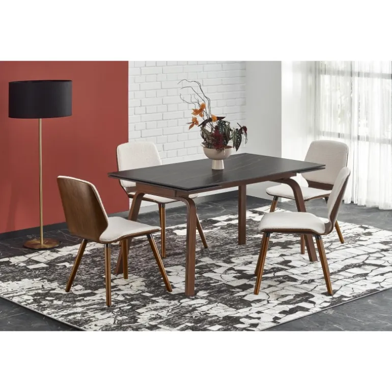 LOZANO Spisebord med udtræk er det perfekte valg for dem, der ønsker en elegant og funktionel løsning til deres spisestue. Med en Sort marmorbordplade og valnødsben, kombinerer dette bord stil og holdbarhed. Bordets dimensioner er 140-200/82/76 cm, hvilket gør det ideelt til både små og store sammenkomster. Bordpladen er lavet af sinteret sten, mens benene er lavet af pulverlakeret stål, hvilket sikrer langvarig brug. Gør din spisestue komplet med dette smukke og praktiske Spisebord med udtræk.