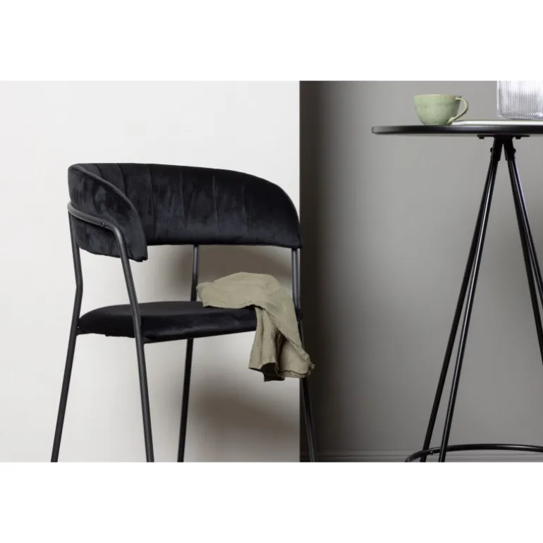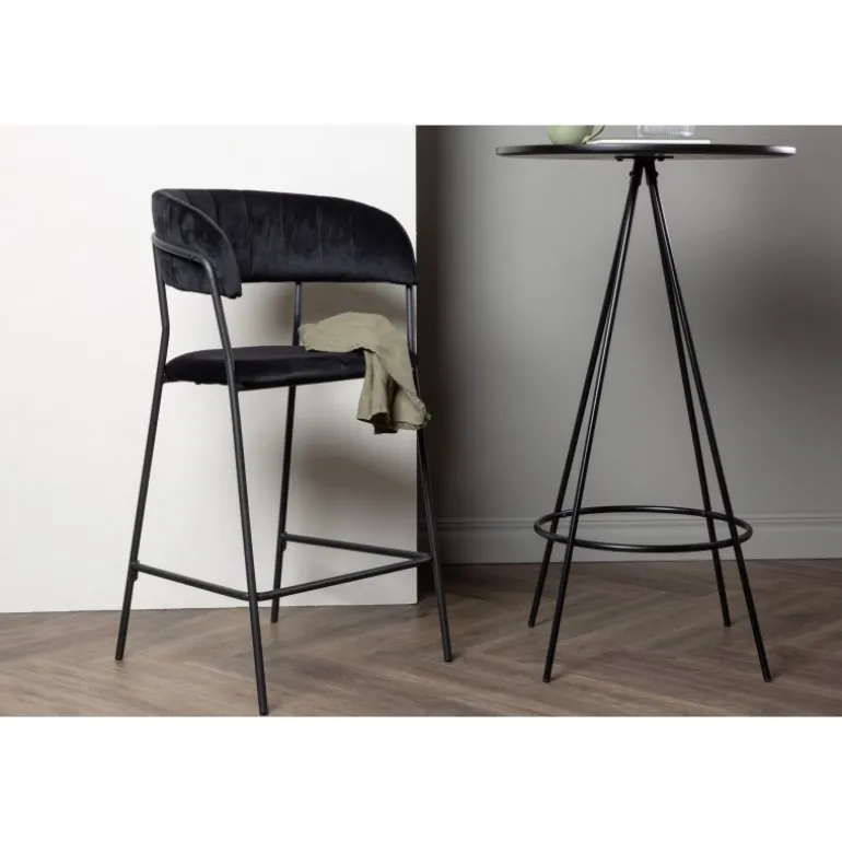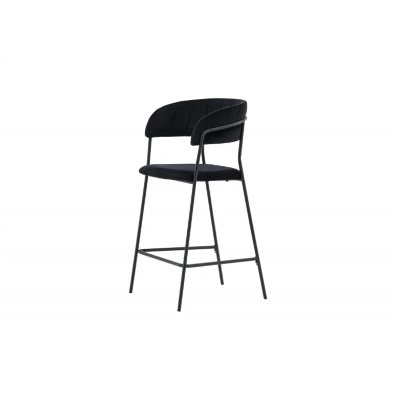 Indret hjemmets hjerte moderne, komfortabelt og tidløst med en iøjnefaldende barstol fra Lui-serien i en elegant sort farve! Denne barstol har et fuldt polstret design med en let afrundet ryg og sæde i polyesterfløjl med stilfulde dekorative syninger. Stolens ben er smalle i sort stål med integreret fodstøtte – garanteret både flot og komfortabel. Skab et indbydende og behageligt udseende omkring dit barbord og nyd dejlige måltider sammen!