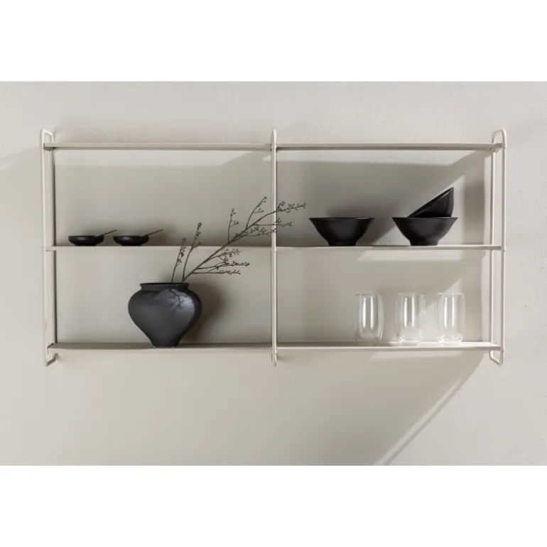 Skab en personlig stil i dit hjem med smart opbevaring ved hjælp af vores smukke beige væghylde fra Lyon-serien! Designet til at passe ind i den moderne, skandinaviske indretningsstil og forbedre dit hjem på en elegant måde. Her får du en væghylde, der kombinerer tidløst og minimalistisk design med praktisk funktionalitet. Denne væghylde er lavet af beige pulverlakeret jern, der sømløst blander sig ind i forskellige stilarter og hjem. Dens klassiske design er tidløst og tilføjer et elegant touch til dit rum. Med tre smalle hylder tilbyder Lyon en stilfuld plads til dine smukke dekorationer. Her kan du arrangere alt fra bøger til planter og lys. Hold dit rum organiseret og elegant. Men måske vigtigst af alt, Lyon væghylde giver dig ikke kun opbevaring, den giver dig muligheden for at udtrykke din stil og skabe et personligt rum, der er både velorganiseret og smukt. Hæng den på væggen og lad dit rum blive hyggeligt på den mest moderne måde! Lyon er også tilgængelig i forskellige farver og størrelser for bedst at tilpasse sig din smag!