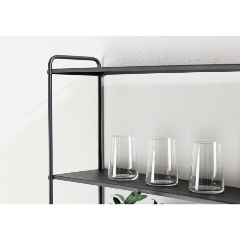 - Tre hylder: Masser af plads til opbevaring og udstilling.