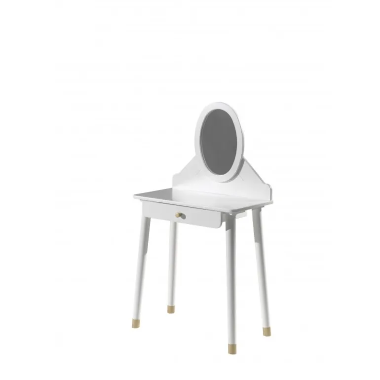 Makeupbord Billy – hvid satin med spejl og skuffe