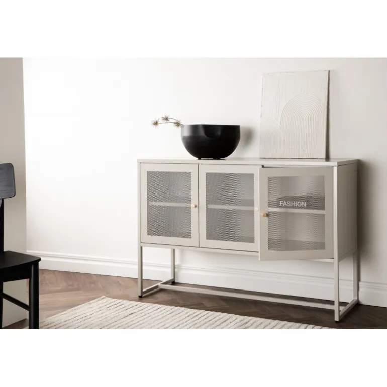 Malla – et moderne skab i et robust industrielt design med lækre netdøre og ben lavet af beige pulverlakeret stål med 2 smarte hylder til opbevaring. Skabet løftes af smalle, høje ben, der skaber en luftig følelse og gør det nemt at støvsuge under. Den perfekte opbevaringsmøbel til alt, hvad du ønsker – fyld det med porcelæn, bøger eller smukke dekorationer. Skabets fleksible størrelse og elegante udseende gør det nemt at placere og passer godt ind i de fleste rum i hjemmet, så du kan indrette efter dine egne behov og ønsker!