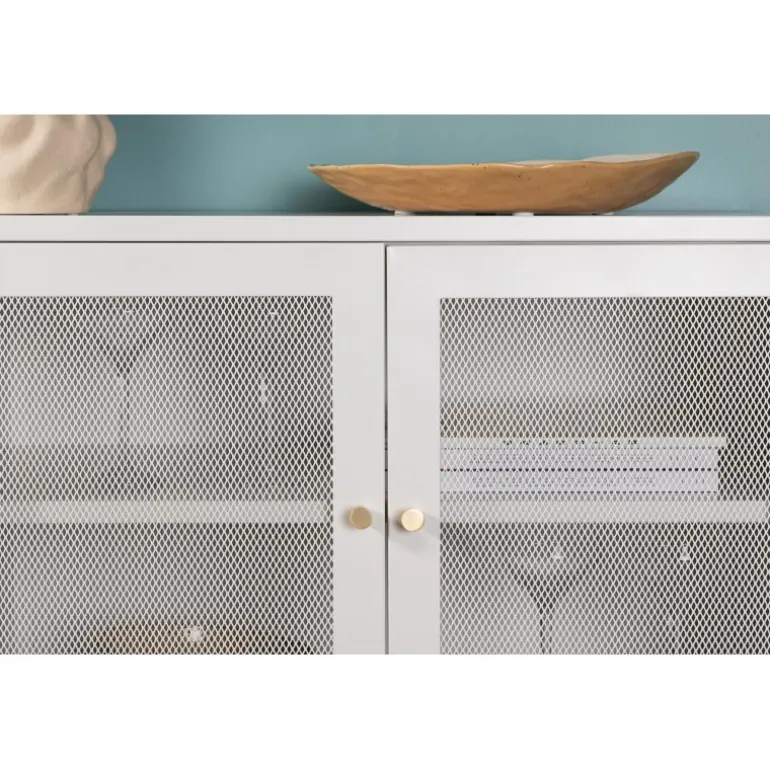 Malla – et moderne skab i et robust industrielt design med lækre mesh-døre og ben af hvid pulverlakeret stål med 2 smarte hylder til opbevaring. Skabet løftes af smalle, høje ben, der skaber en luftig følelse og gør det nemmere at støvsuge under. Den perfekte opbevaringsmøbel til alt, hvad du ønsker – fyld det med porcelæn, bøger eller smukke dekorationer. Skabets fleksible størrelse og elegante udseende gør det nemt at placere og passer godt ind i de fleste rum i hjemmet, så du kan indrette efter dine egne behov og ønsker!