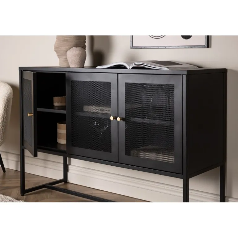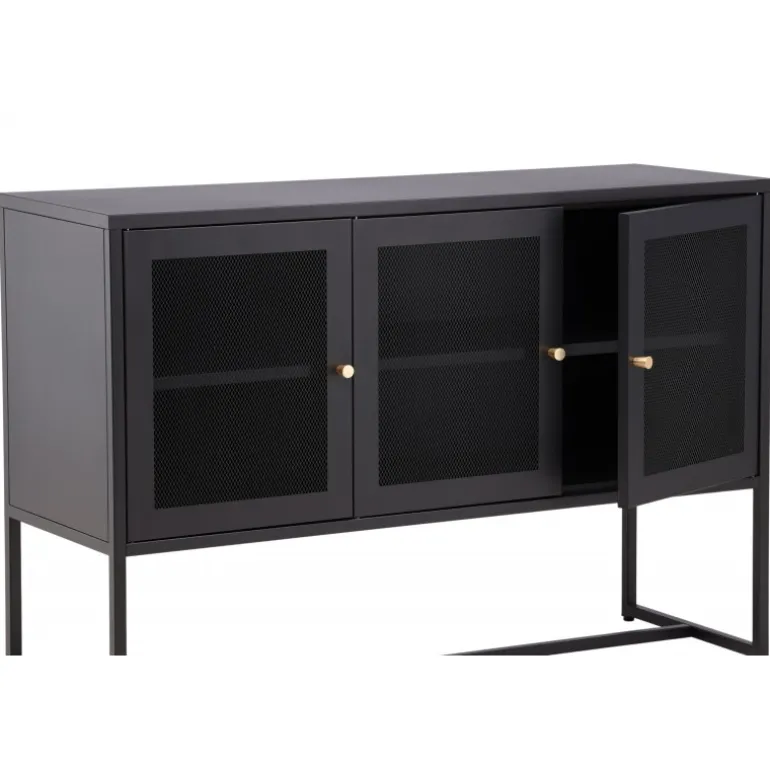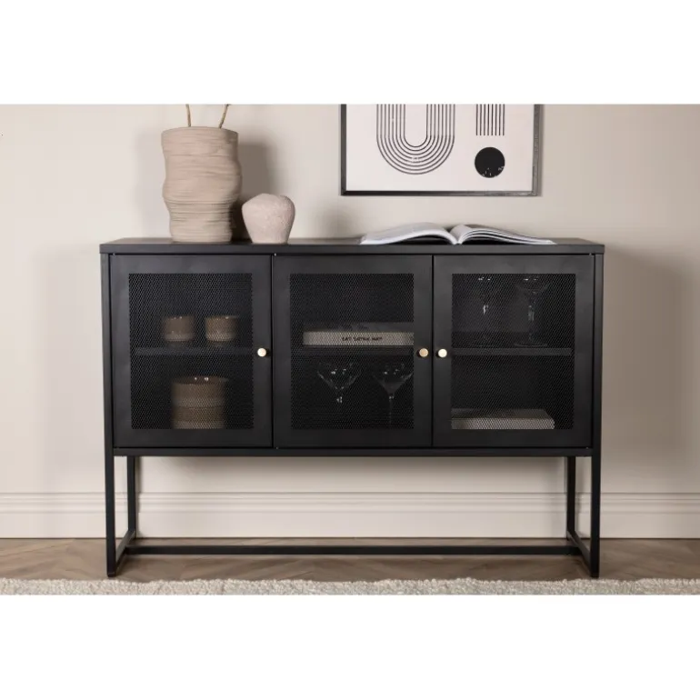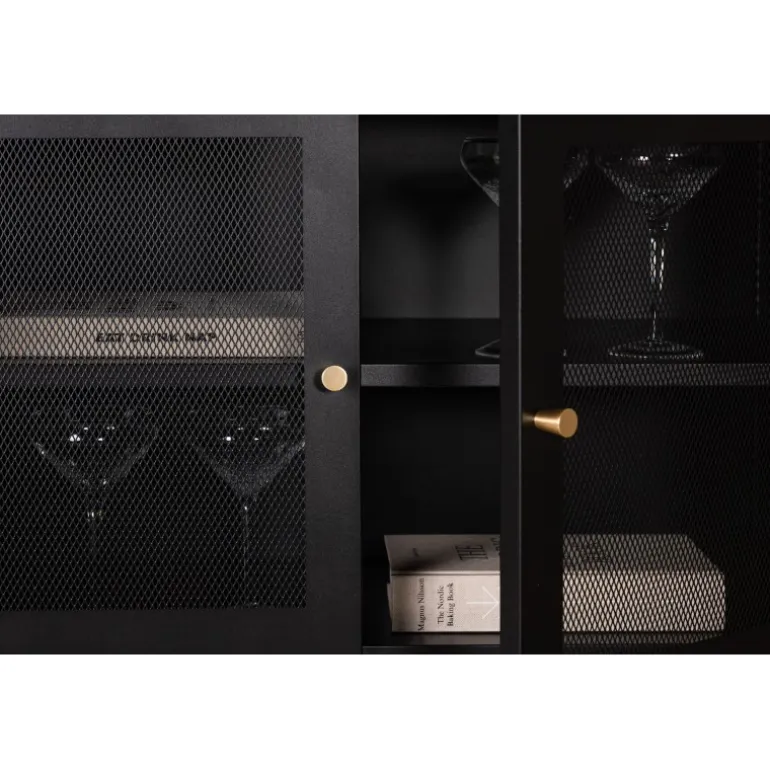 Malla – et moderne skab i et robust industrielt design med lækre mesh-døre og ben lavet af sort pulverlakeret stål med 2 smarte hylder til opbevaring. Skabet løftes af smalle, høje ben, der skaber en luftig følelse og gør det lettere at komme til med støvsugeren. Den perfekte opbevaringsmøbel til alt, hvad du ønsker – fyld det med porcelæn, bøger eller smukke dekorationer. Den fleksible størrelse og elegante udseende af skabet gør det nemt at placere og passer godt ind i de fleste rum i hjemmet, så indret efter dine egne behov og ønsker!