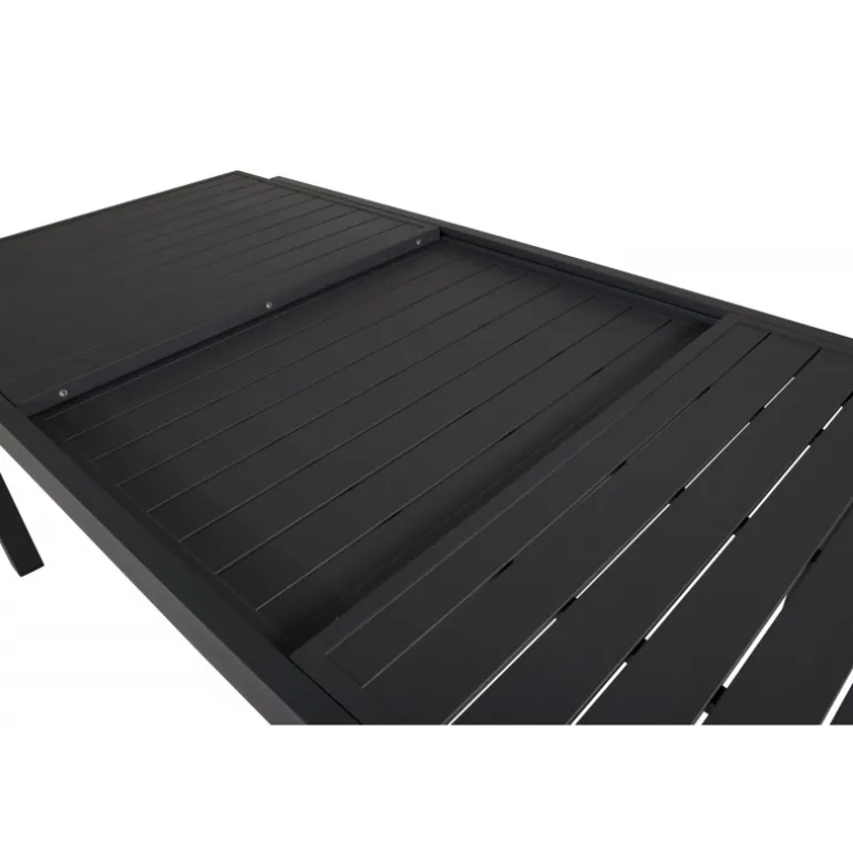 Indret terrassen eller udendørsområdet med et stilfuldt spisebord i lige, nordisk design! Marbella er et rektangulært, holdbart spisebord i sort aluminium, der kan forlænges efter behov. “Dress up or dress down” din spiseoplevelse ved at vælge dine foretrukne spisestole. Vi har masser af komfortable og stilfulde udendørsstole, du kan kombinere med. Gør dig klar til sommerens natteliv og dejlige måltider udendørs! Plejeråd: Udendørsmøbler i aluminium og rustfrit stål bør rengøres regelmæssigt med vand og mild sæbe. Skyl altid grundigt med rigeligt vand, hvilket er ekstra vigtigt, hvis møblerne er placeret tæt på havet, hvor salt kan transporteres gennem luften.