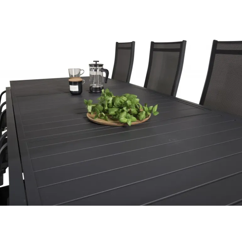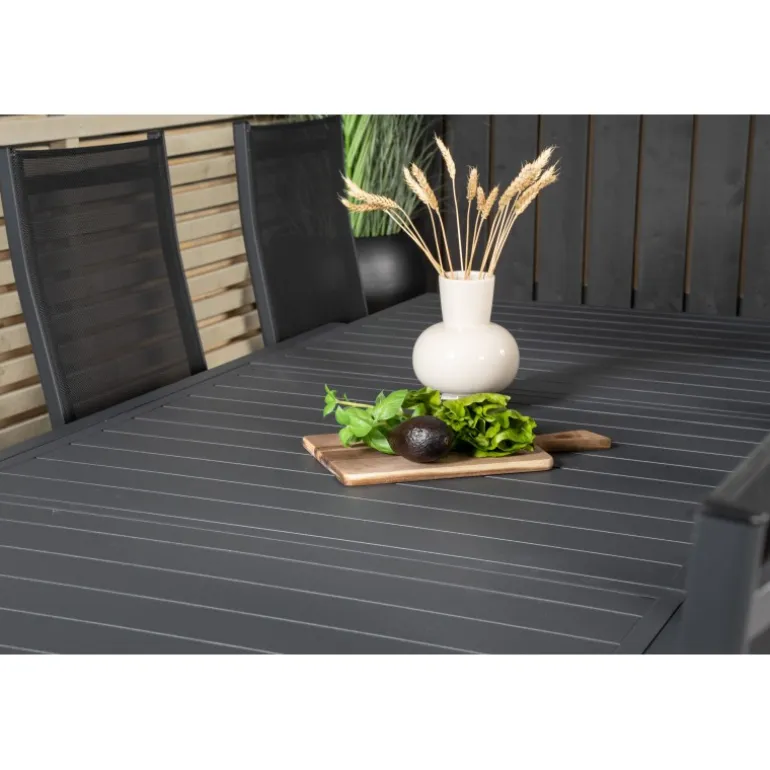 Lad dette smukt matchede Loungesæt – Havemøbelsæt med en moderne følelse blive et naturligt samlingspunkt på balkonen. Spisestolene Copacabana tilbyder god komfort, og spisebordet Marbella sikrer, at der er plads til alle. Fremstillet af holdbart aluminium og tekstilene, er dette sæt perfekt til udendørs brug og kræver kun minimal vedligeholdelse. Nyd dine måltider i stil og komfort med Marbella Rektangulært Loungesæt – Havemøbelsæt.