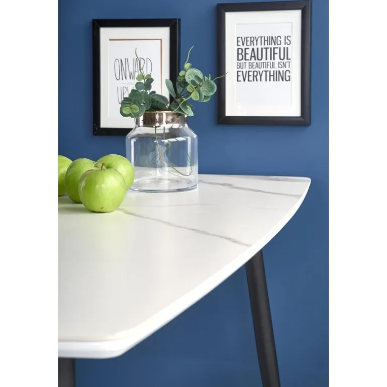 - Stilfuldt design: Hvid marmor overflade og Sorte ben.