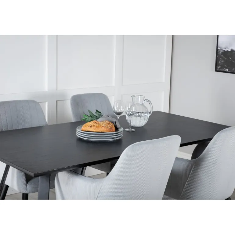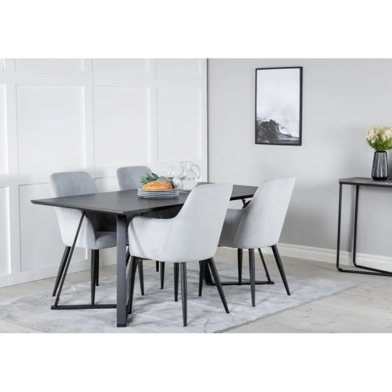 Marina Rektangulære Spisebordssæt – Det perfekte samlingspunkt i dit køkken! Dette stilfulde og komfortable Spisebordssæt bestående af Marina spisebord og Comfort spisebordsstole, skaber en indbydende og hyggelig atmosfære for dig og dine gæster. Stolerne er robuste og velpolstrede, hvilket gør dem ideelle til lange og hyggelige middage med venner og familie. Med et moderne design og materialer af høj kvalitet, er dette Spisebordssæt både funktionelt og æstetisk tiltalende.